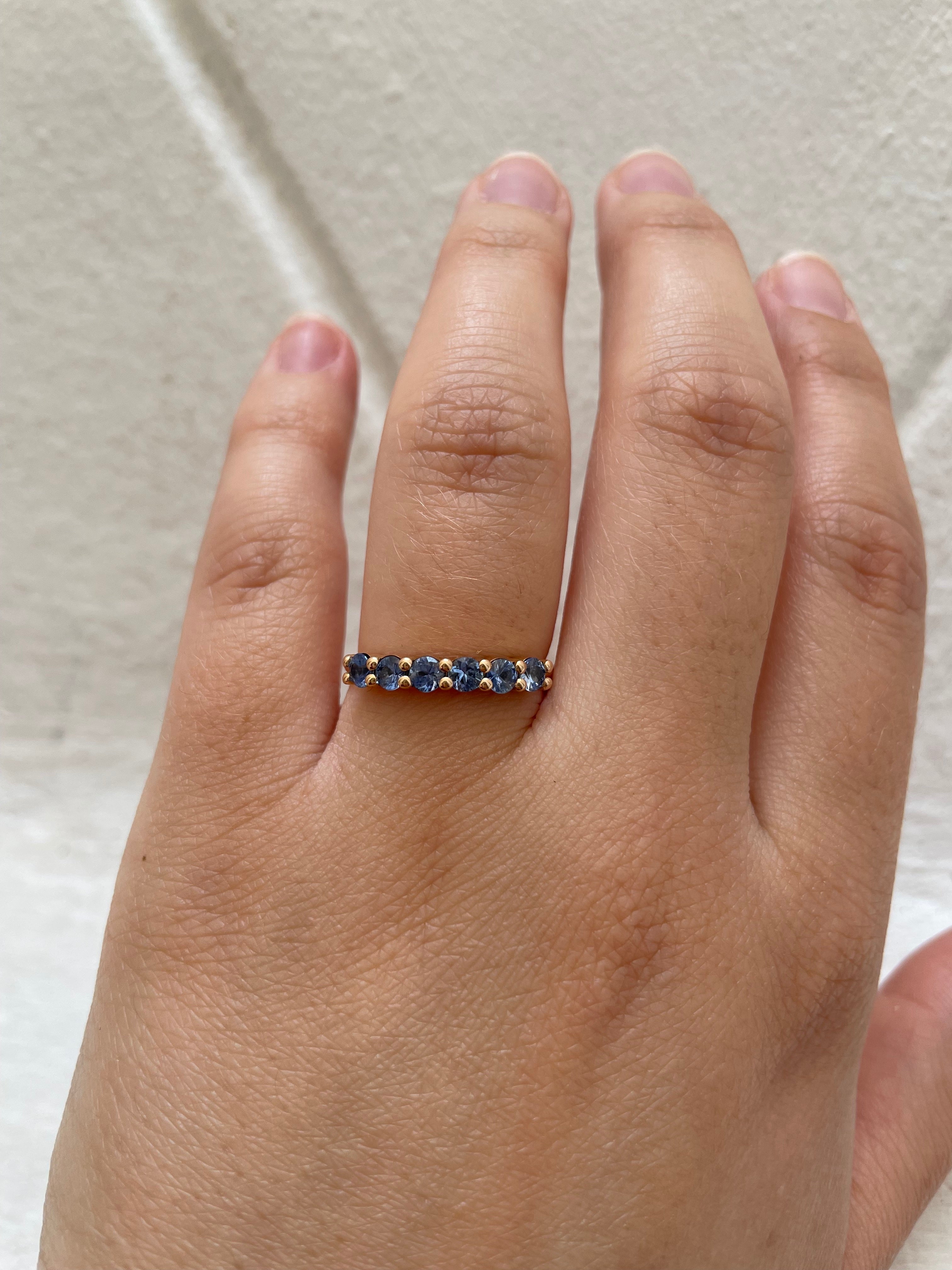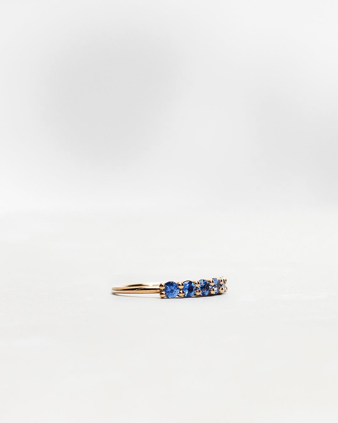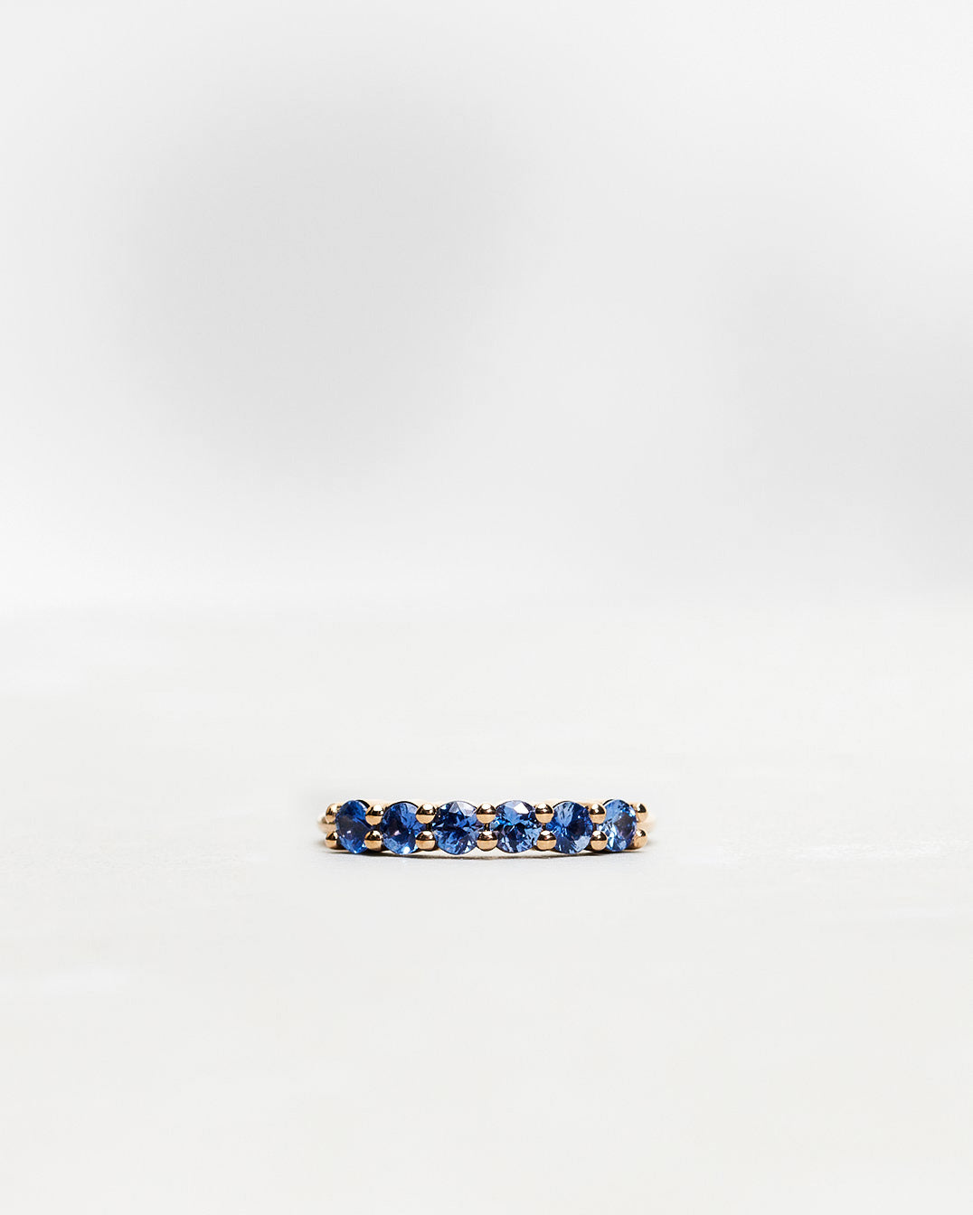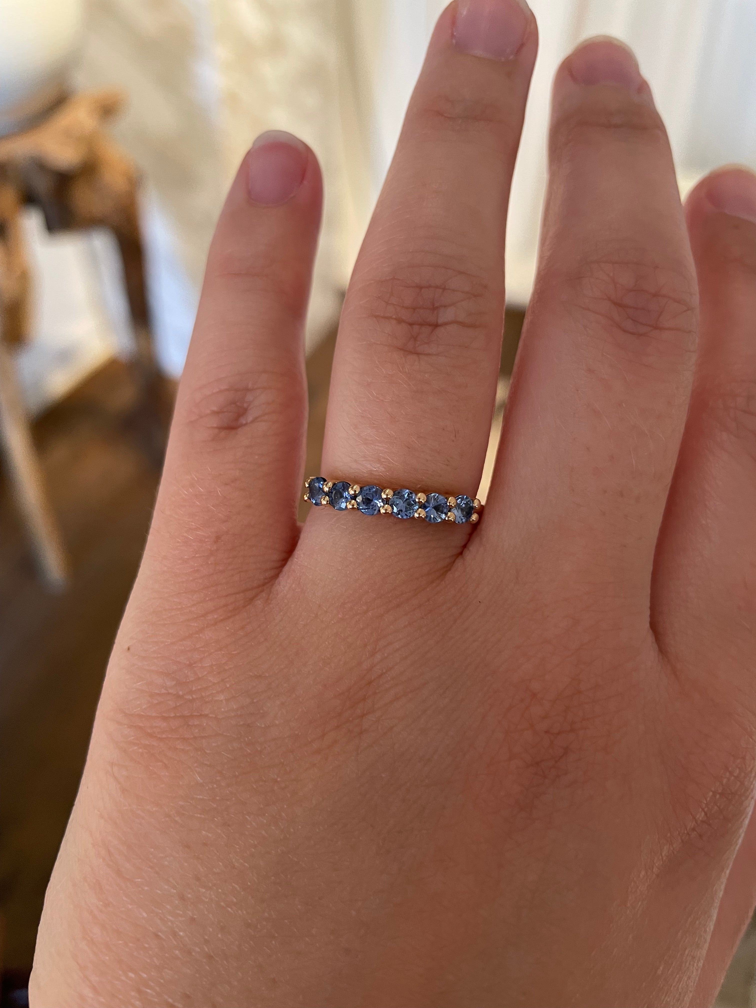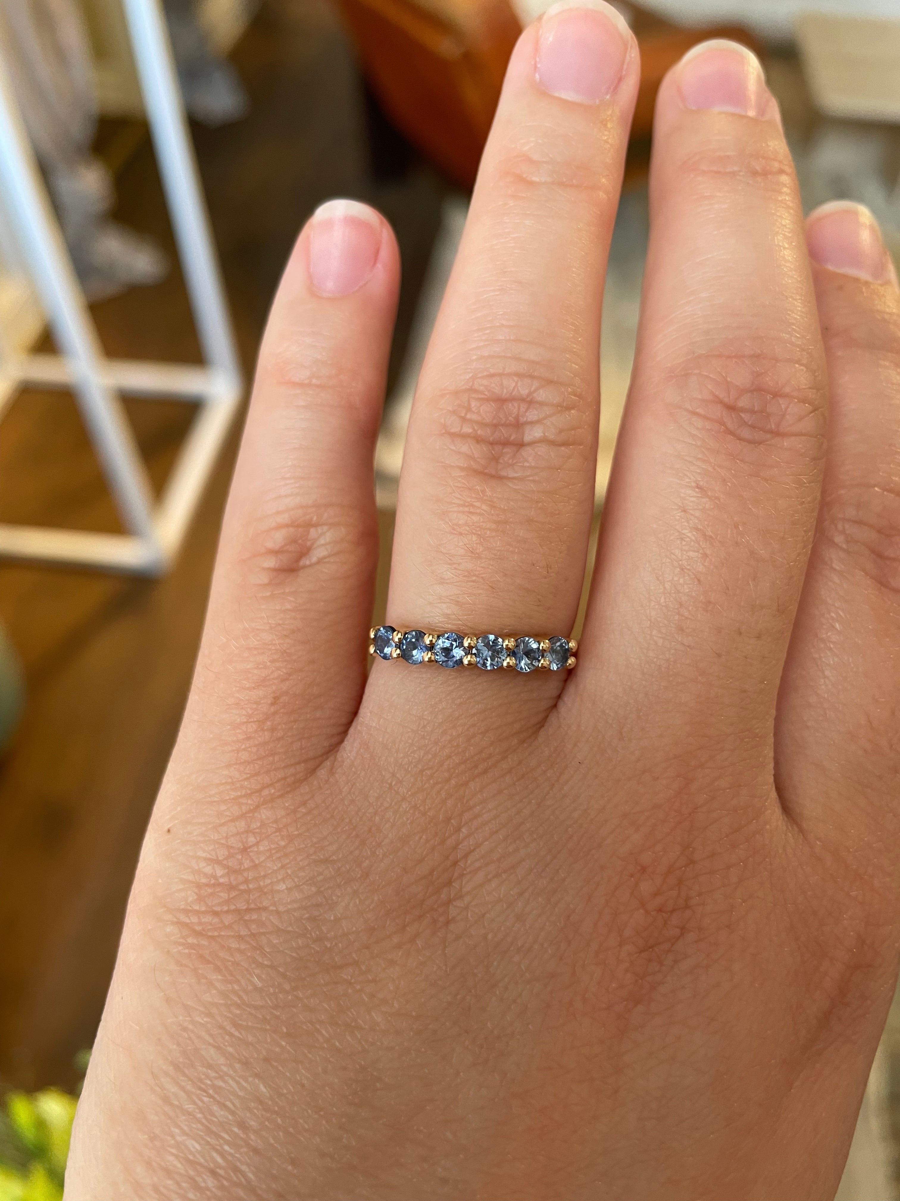 This version of Mini Angel Ring features six beautiful light blue sapphires.