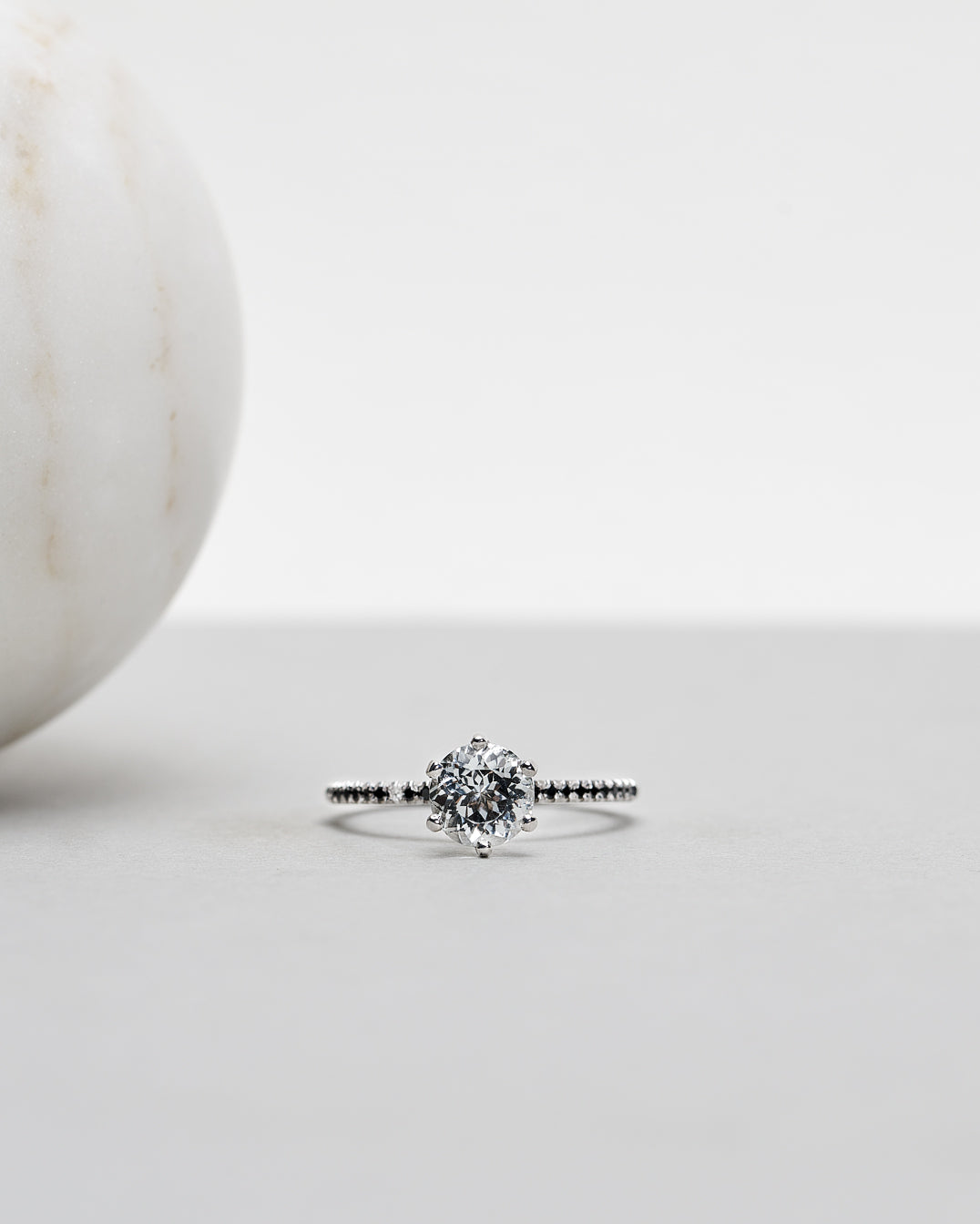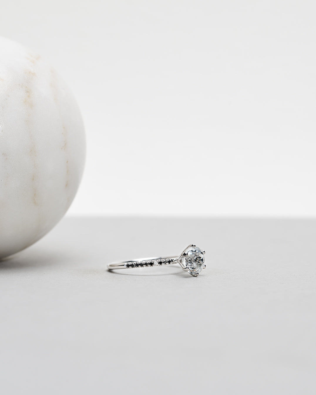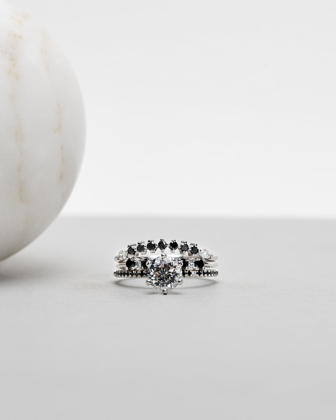 - Solitaire Petite Sparkle Ring in White Gold with 1.63 CT White Topaz and Black Diamonds