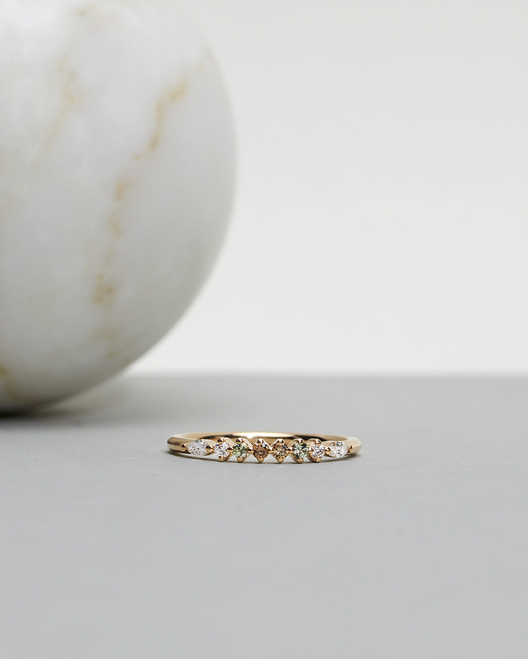 - Idun Straight Diamond Band with Diamonds TWVS, Olive Green Sapphires and Chocolate Diamonds