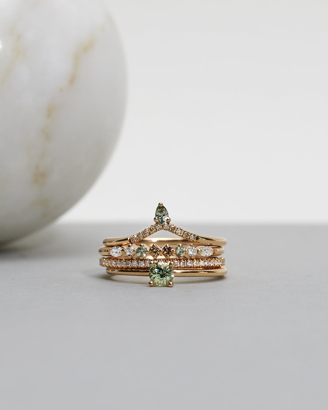 This week we're highlighting one of our most popular gemstones – the olive green sapphire! We have used different cut olive green sapphires, chocolate diamonds and white diamonds to create five softly colored, exquisite rings.
