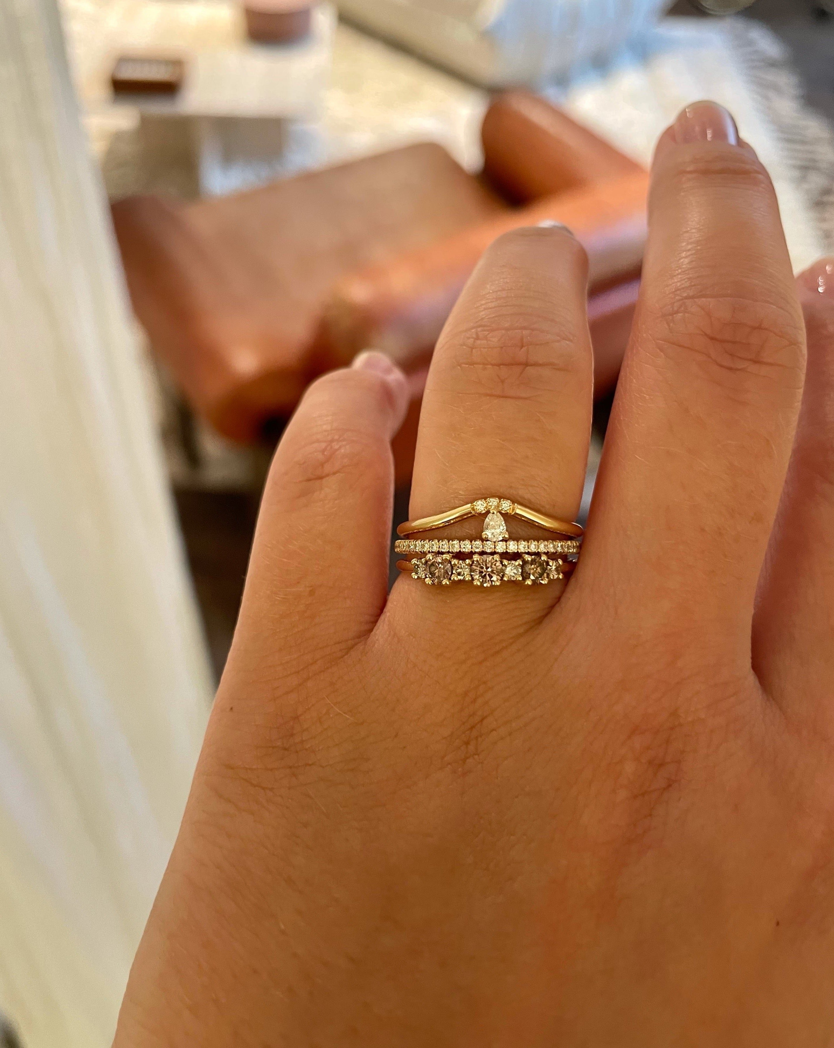 Brigitte ring is beautiful worn alone on the ring finger or middle finger.