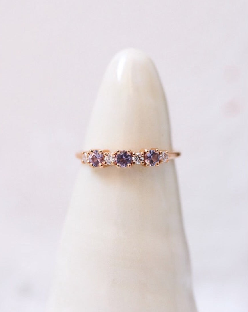 Brigitte Ring has become one of our most loved rings. This version features soft lavender sapphires and sparkling diamonds.