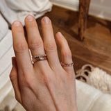 In the last picture, Cecilia is wearing Casper Clean Ring 4 mm with Tiny Diamond Ring and Mini Brigitte Ring 0.26 CT, as well as Marquise Ring and Round Goldie on the pinky.
