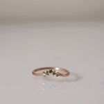 Here we have combined the beautiful design of Five Diamond Triangle Ring with the interesting look of a green tourmaline gradient, ranging from light to dark. This makes this stunning ring even more eye-catching, and super lovely!