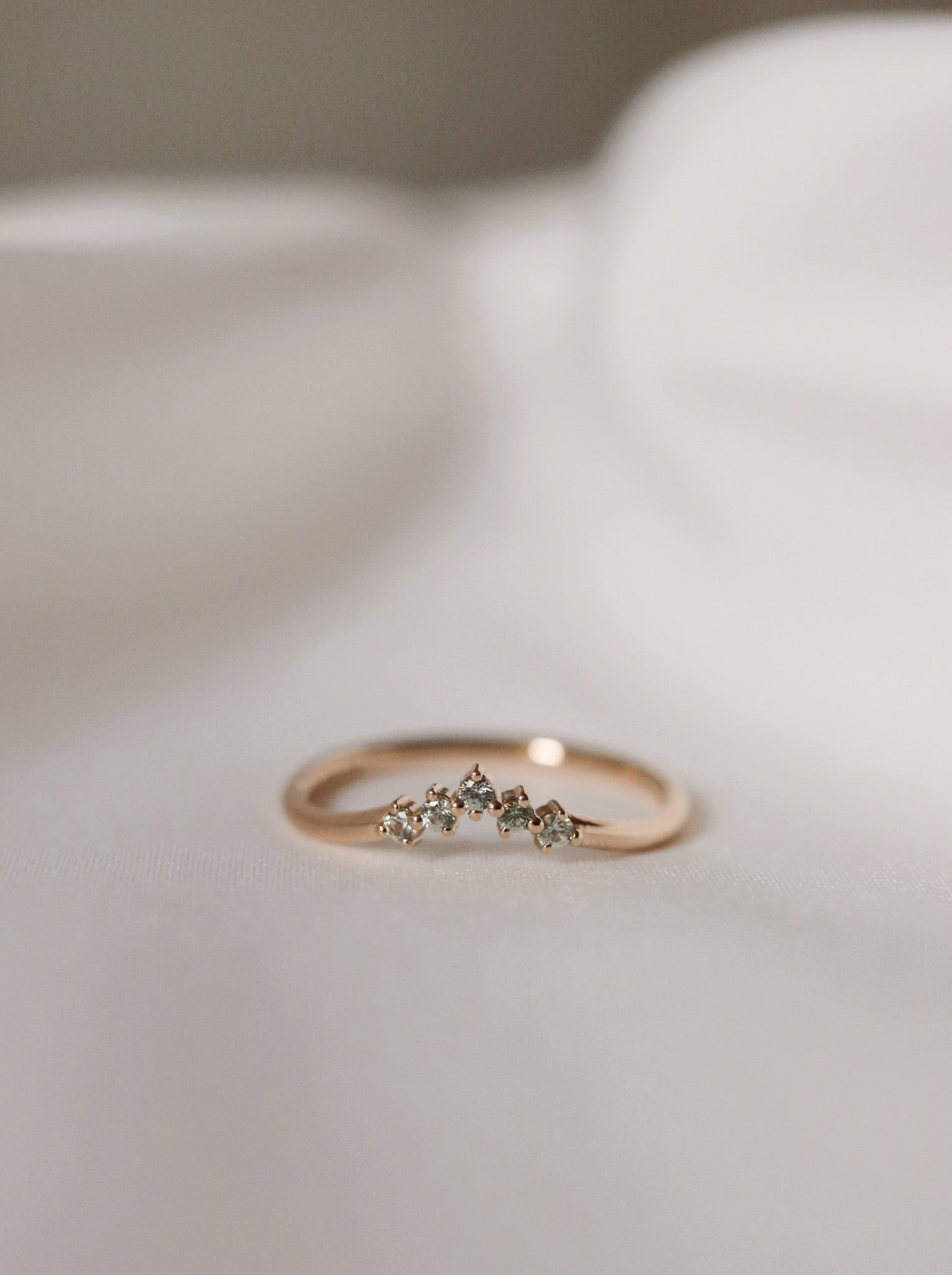 The rare olive green sapphires add a beautiful softness and subtle color to the ring.