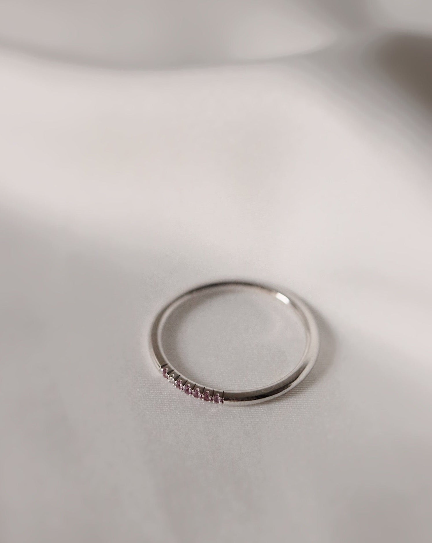 Jade Petite Enough Ring is a beautiful, simplistic ring with seven small gemstones set in the band.