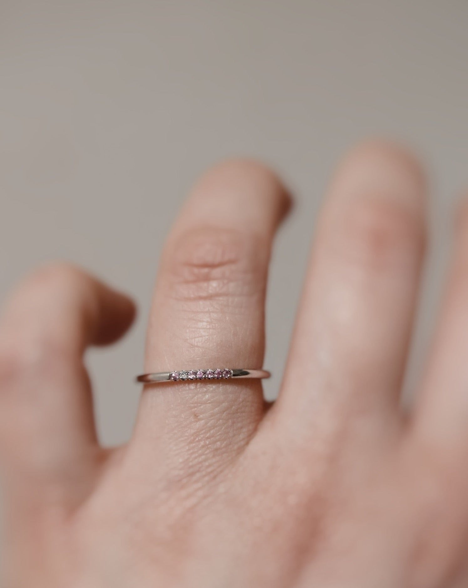 Finished: Jade Petite Enough Ring in White Gold with Pink Sapphires and Diamond