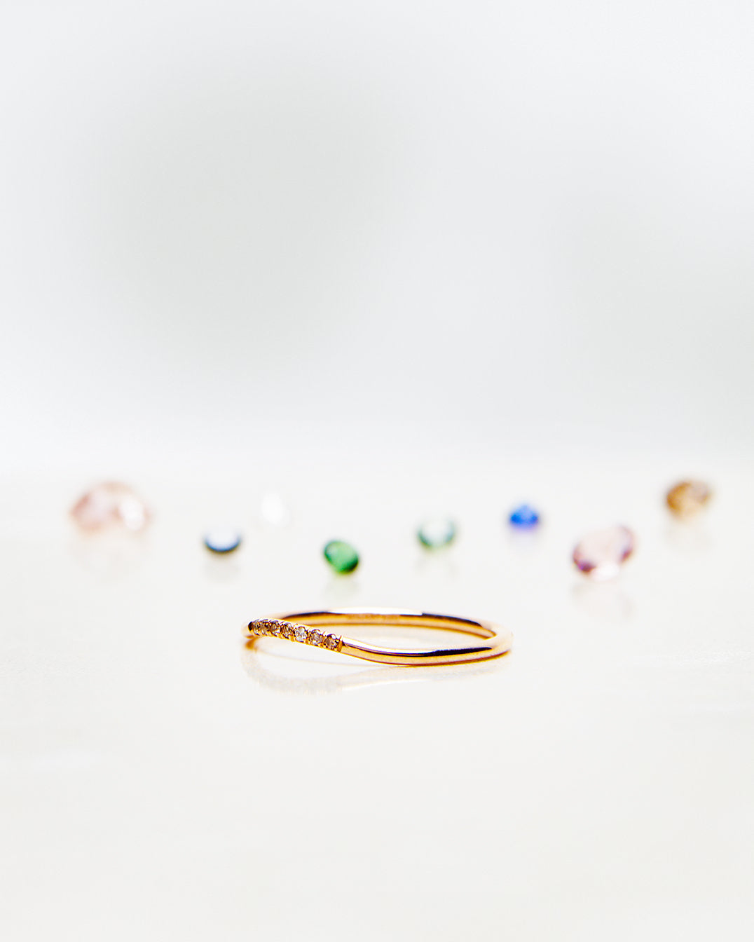 A beautiful finishing to a ringstack! Very delicate to wear alone - it melts into your finger as if you are not wearing it at all.