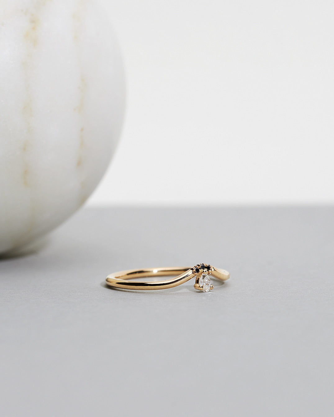 - Lily Fallen Drop Ring with Three Black Brilliant Diamonds