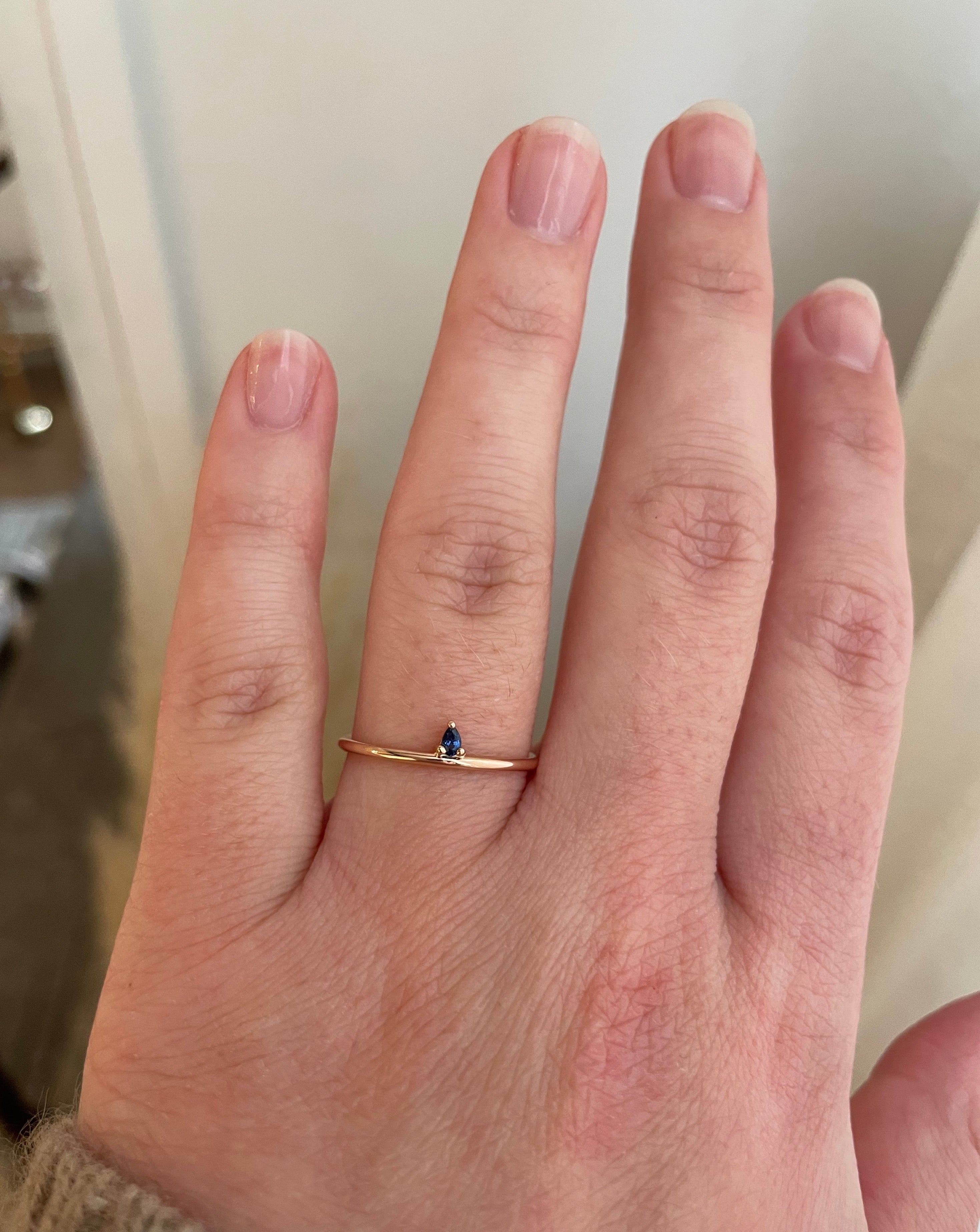 Finished: Lily Tiny Diamond Drop Ring in Rose Gold with Dark Blue Sapphire