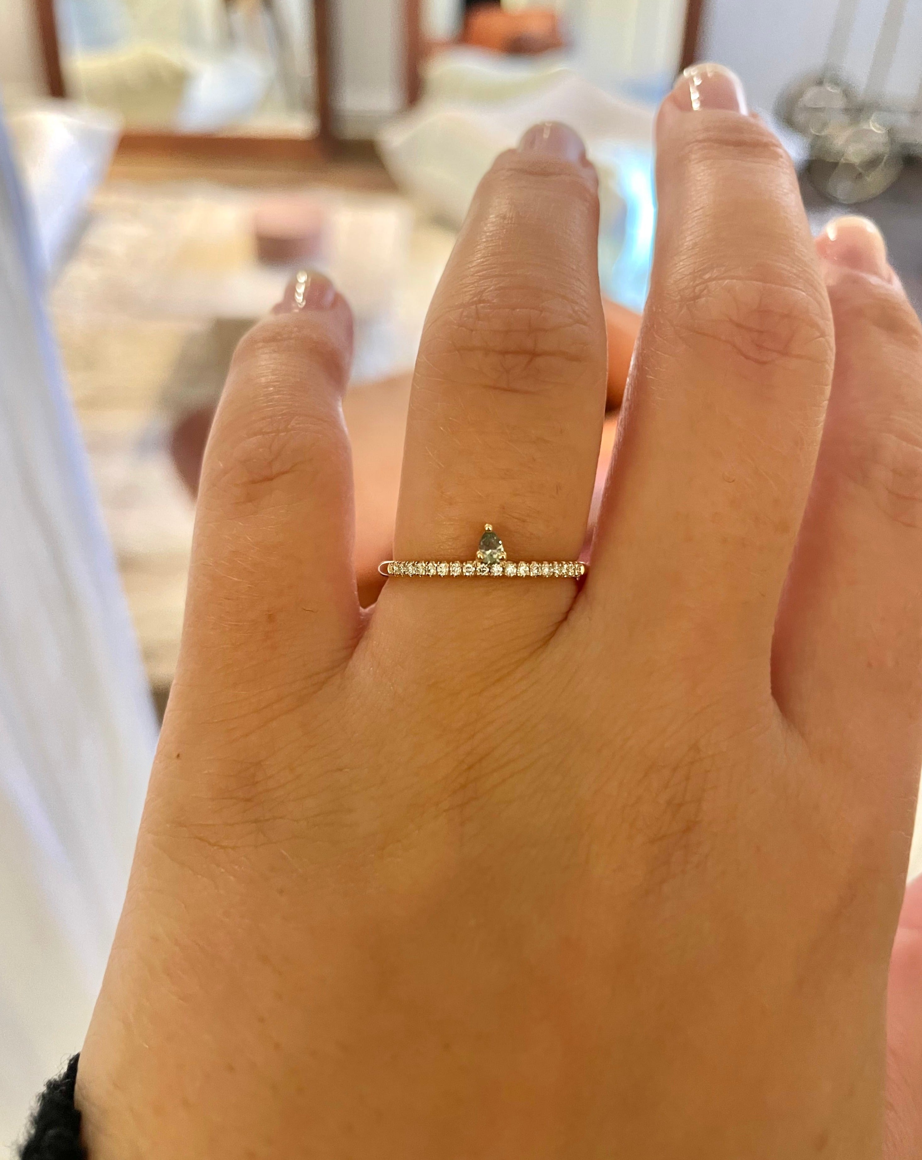 Lily Tiny Diamond Drop Ring is a versatile ring in a stunning and interesting style. It looks just as pretty on top of a stack as it does alone on any finger, and it is also perfect as a pinky ring or top ring. Therefore, we are sure that this ring will make a lovely addition to your collection!