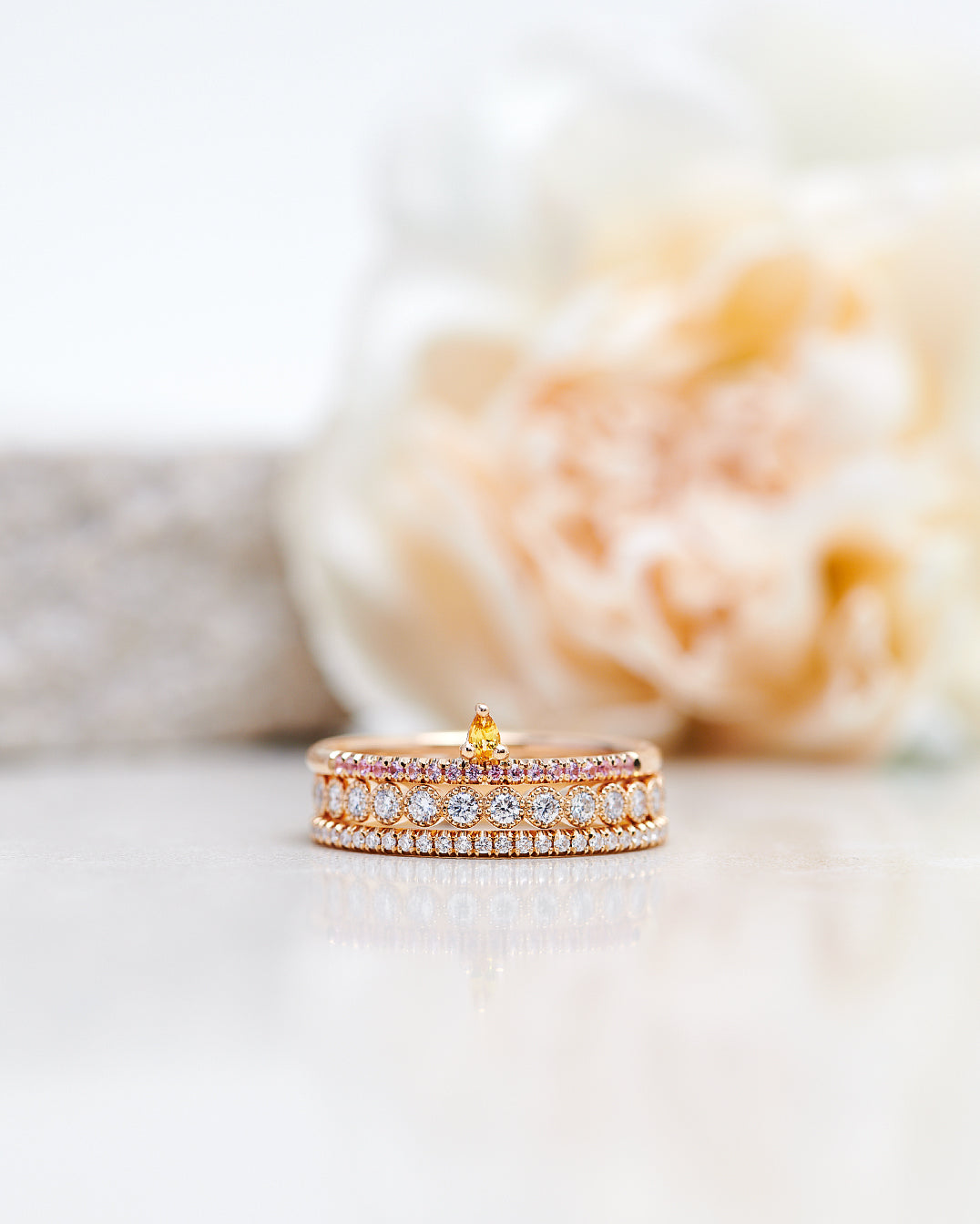 Finished: Lily Tiny Drop Ring with a Yellow Sapphire Drop and Light Pink Sapphire Row