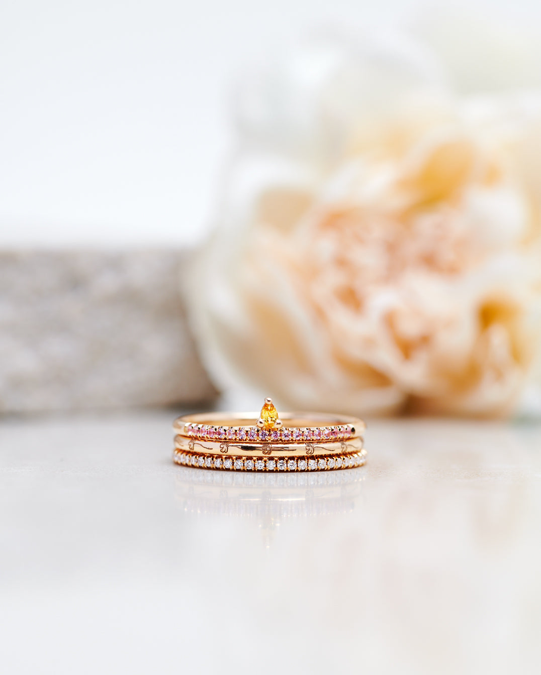 This week we're highlighting some beautiful models from our Lily Drop Collection. What makes the Lily Rings extra special is that they all have gemstones in the shape of a drop! This makes the Lily Rings perfect at the bottom or top of a stack but they also look lovely when worn alone on a finger. They're simply a great addition to any jewelry collection!