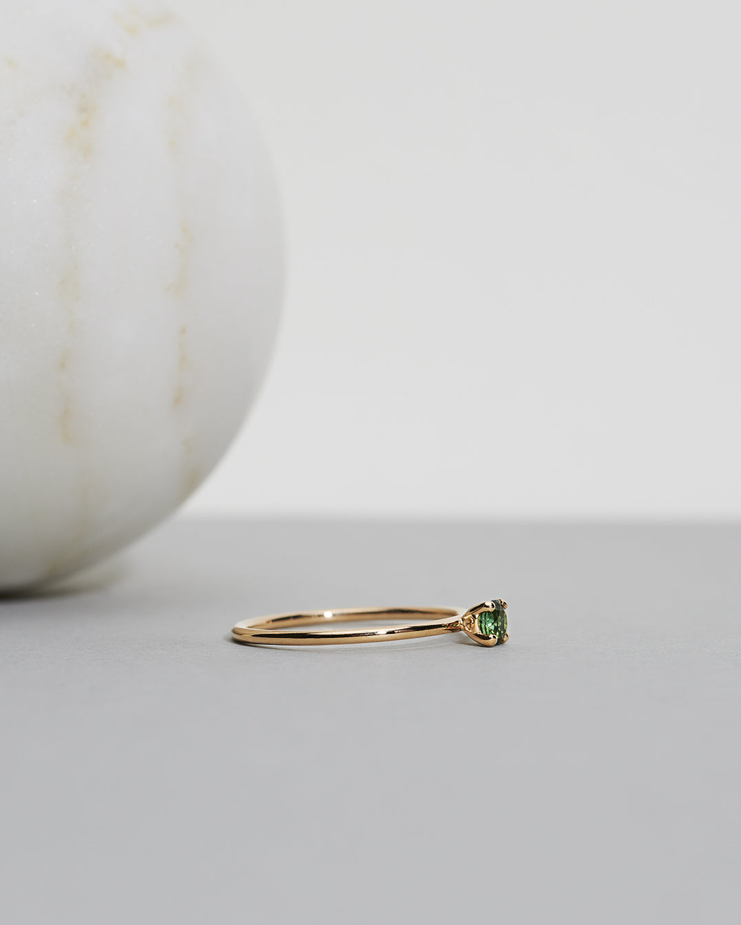- Low Set Not At All Tiny Ring with a Dark Green Tourmaline
