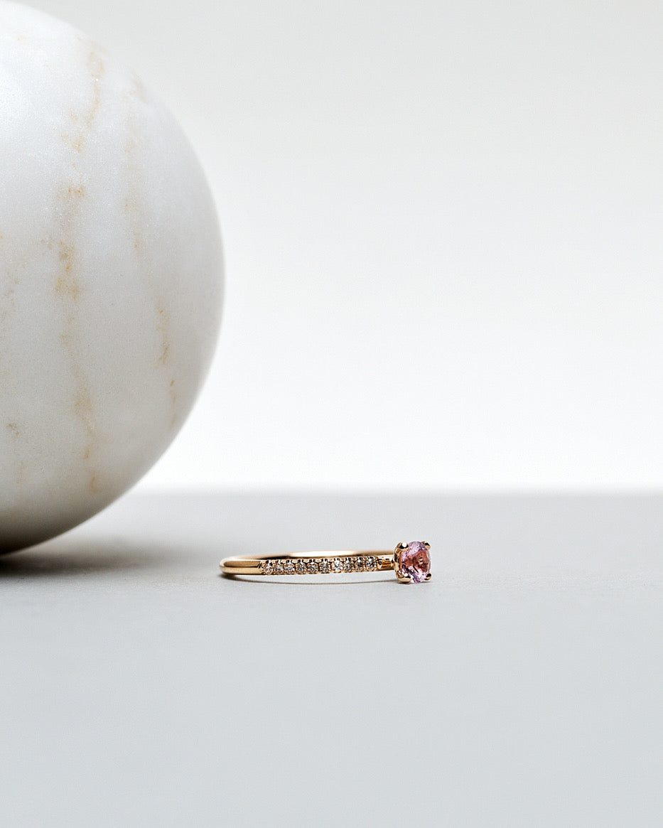 The Not At All Tiny Sparkle Ring is a signature mumbaistockholm ring. Loved by everyone! This low set version is perfect if you want the gemstone set close to your finger.
