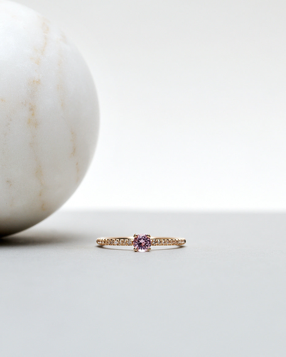 Finished: Low Set Not At All Tiny Sparkle Ring with Light Pink Morganite and Champagne Diamonds