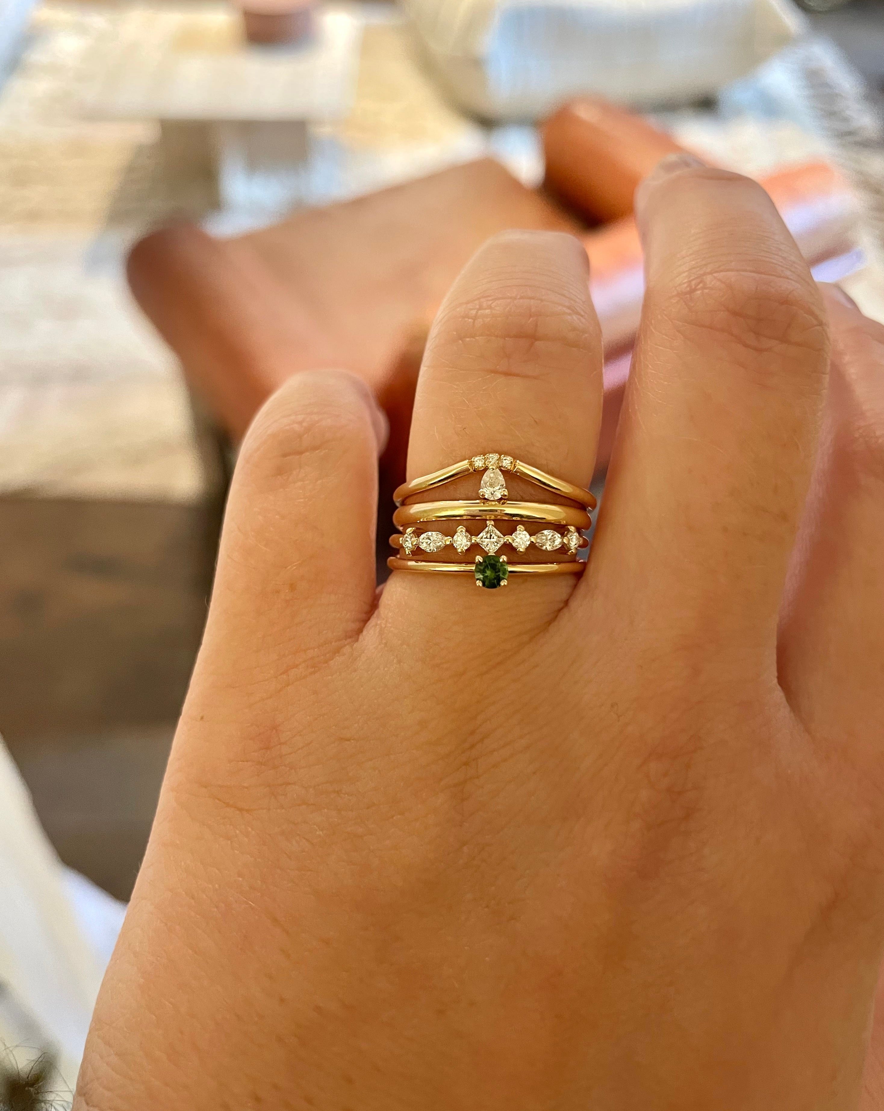 This ring looks just as beautiful alone as in a stack. Despite its low setting, it stacks wonderfully with most other rings from the collection.