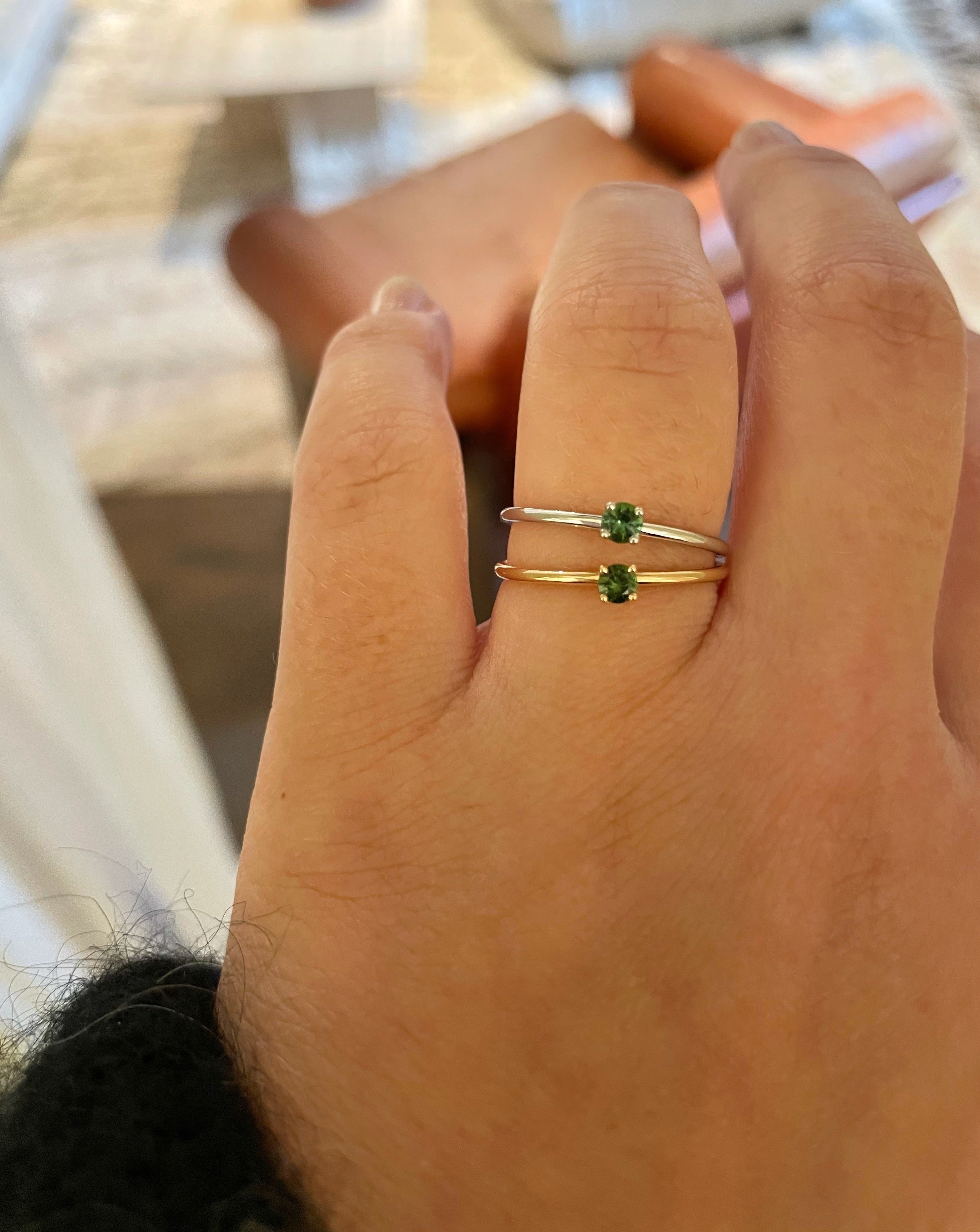 Tourmalines rank a hardness of 7-7,5 on Moh's Scale of Hardness and come in many different colors. In this ring we have used a stunning dark green tourmaline.