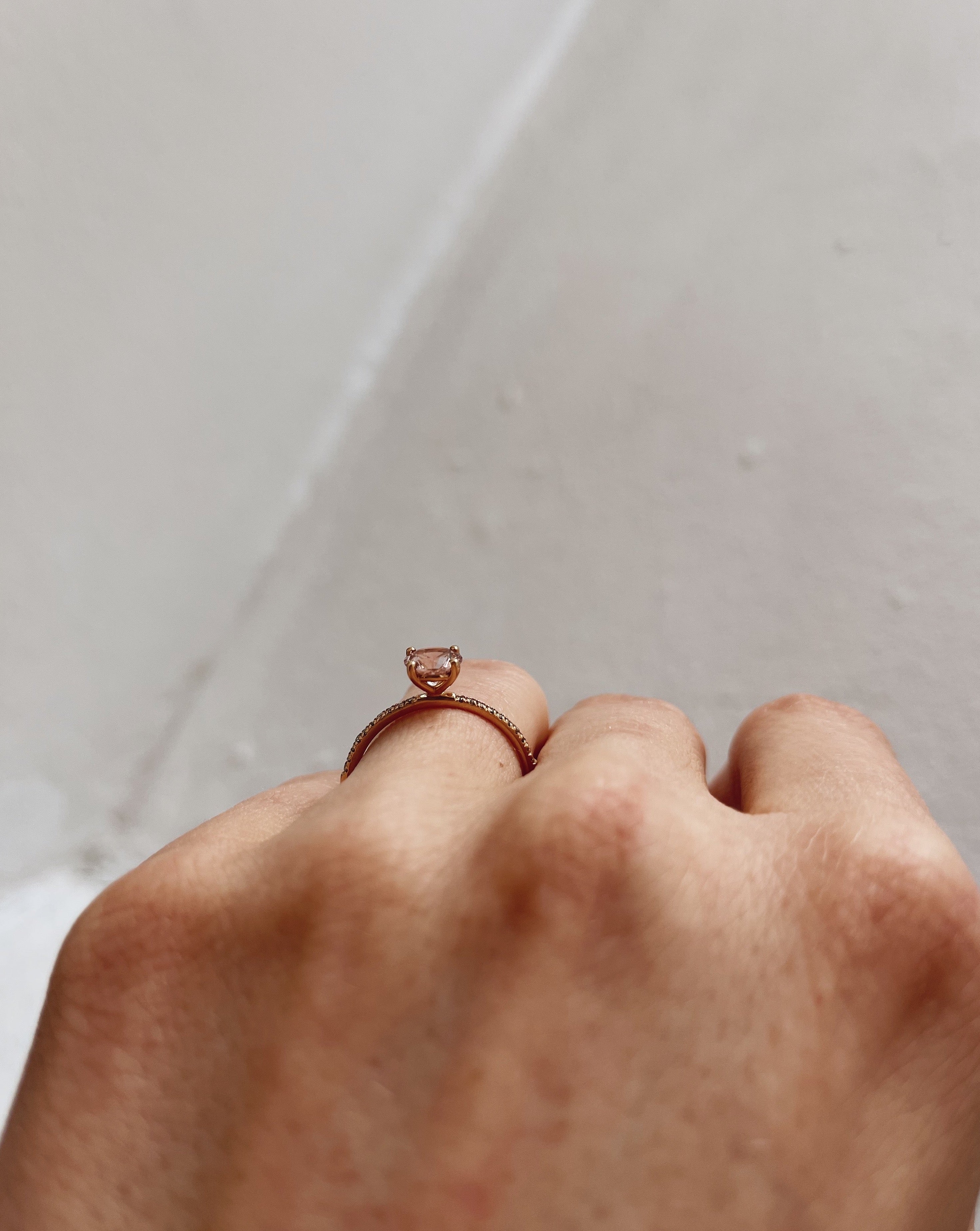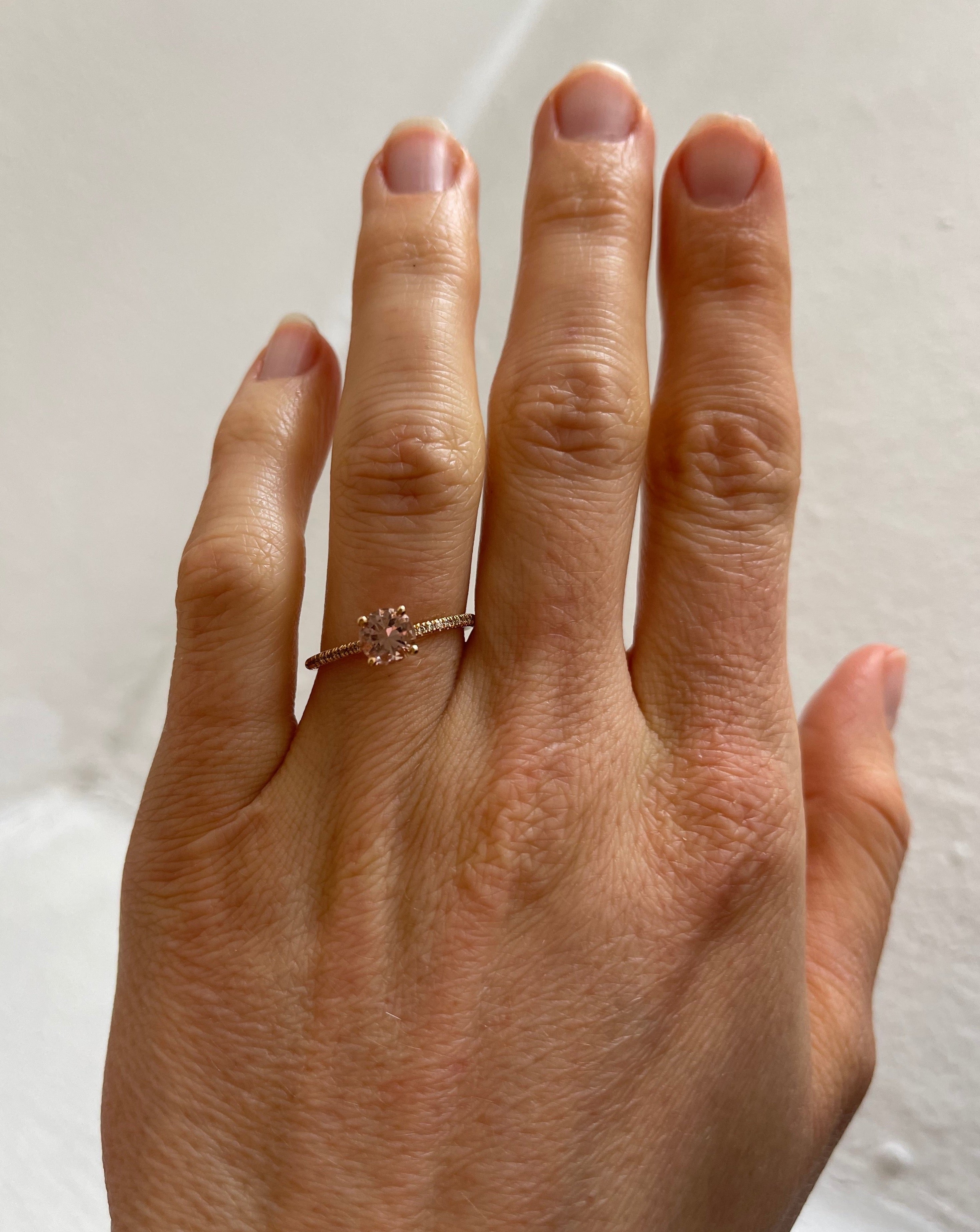 Finished: Low Set Solitaire Sparkle Ring with Light Pink Morganite and Champagne Diamonds