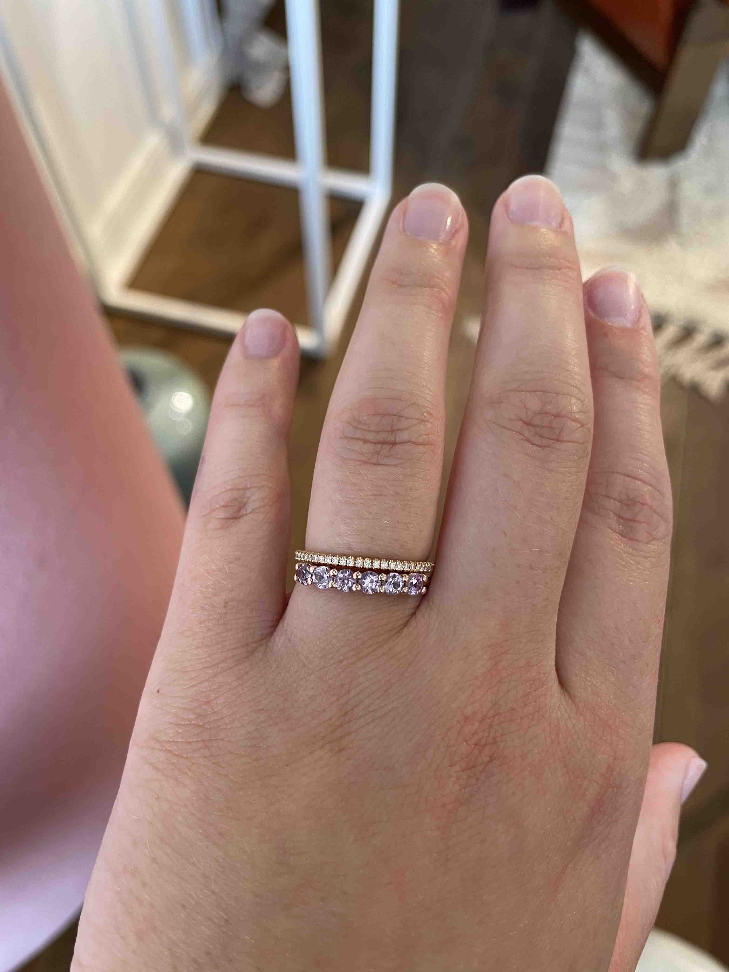 This ring looks just as stunning alone on the ring finger or middle finger as it does in a stack.