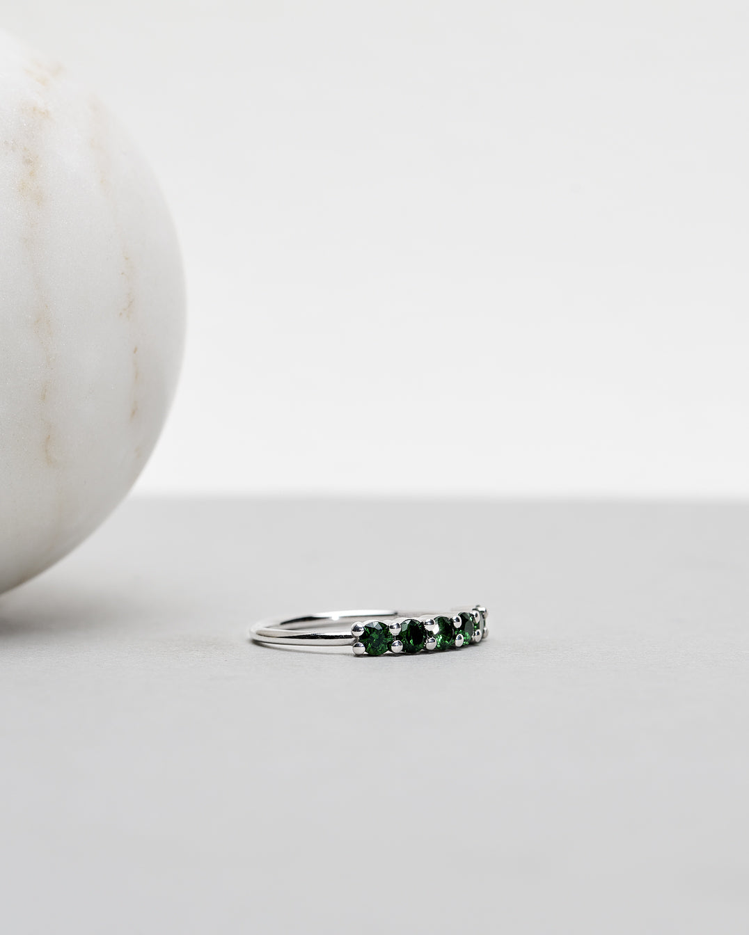 - Mini Angel Ring in White Gold with Dark Green Tourmalines