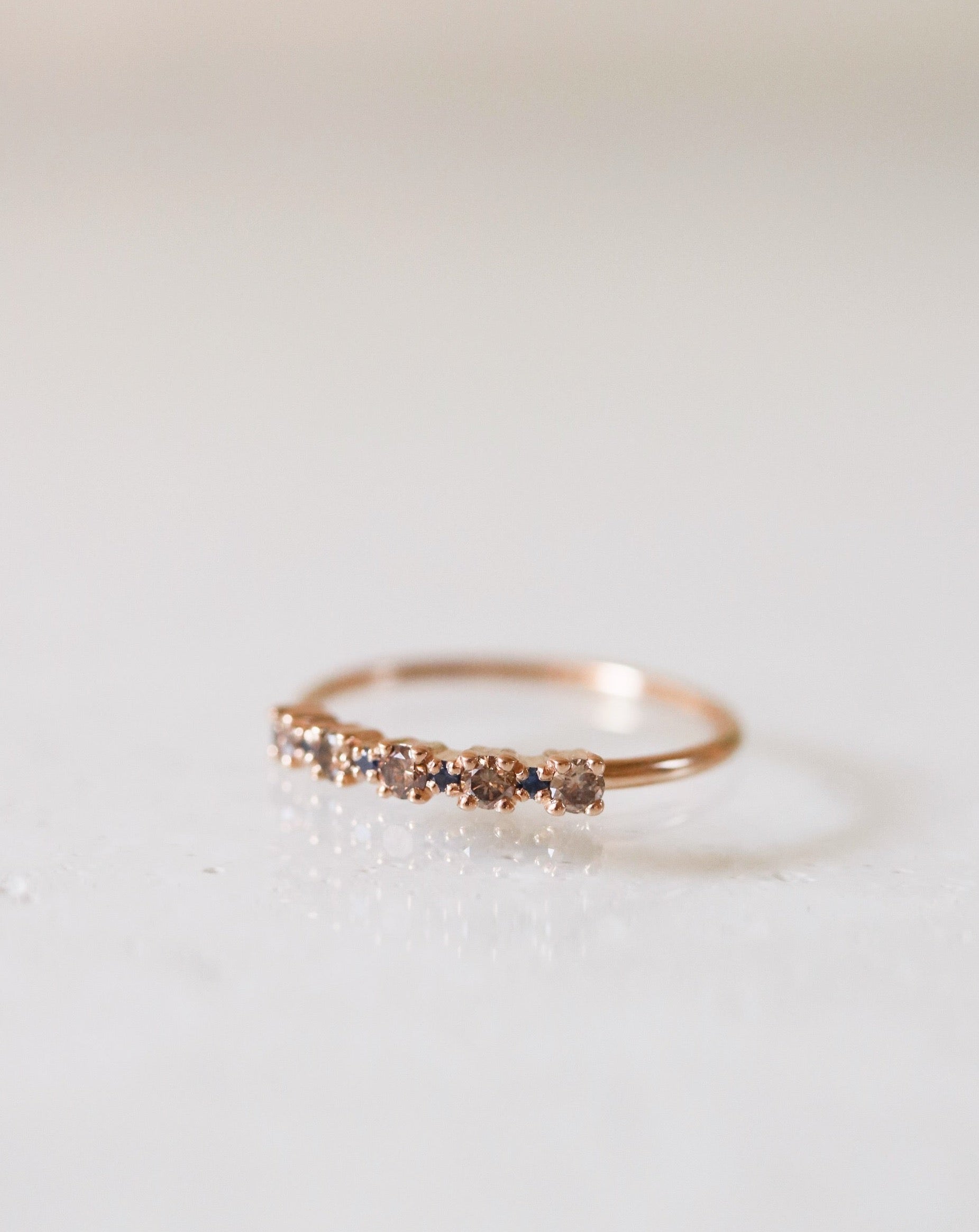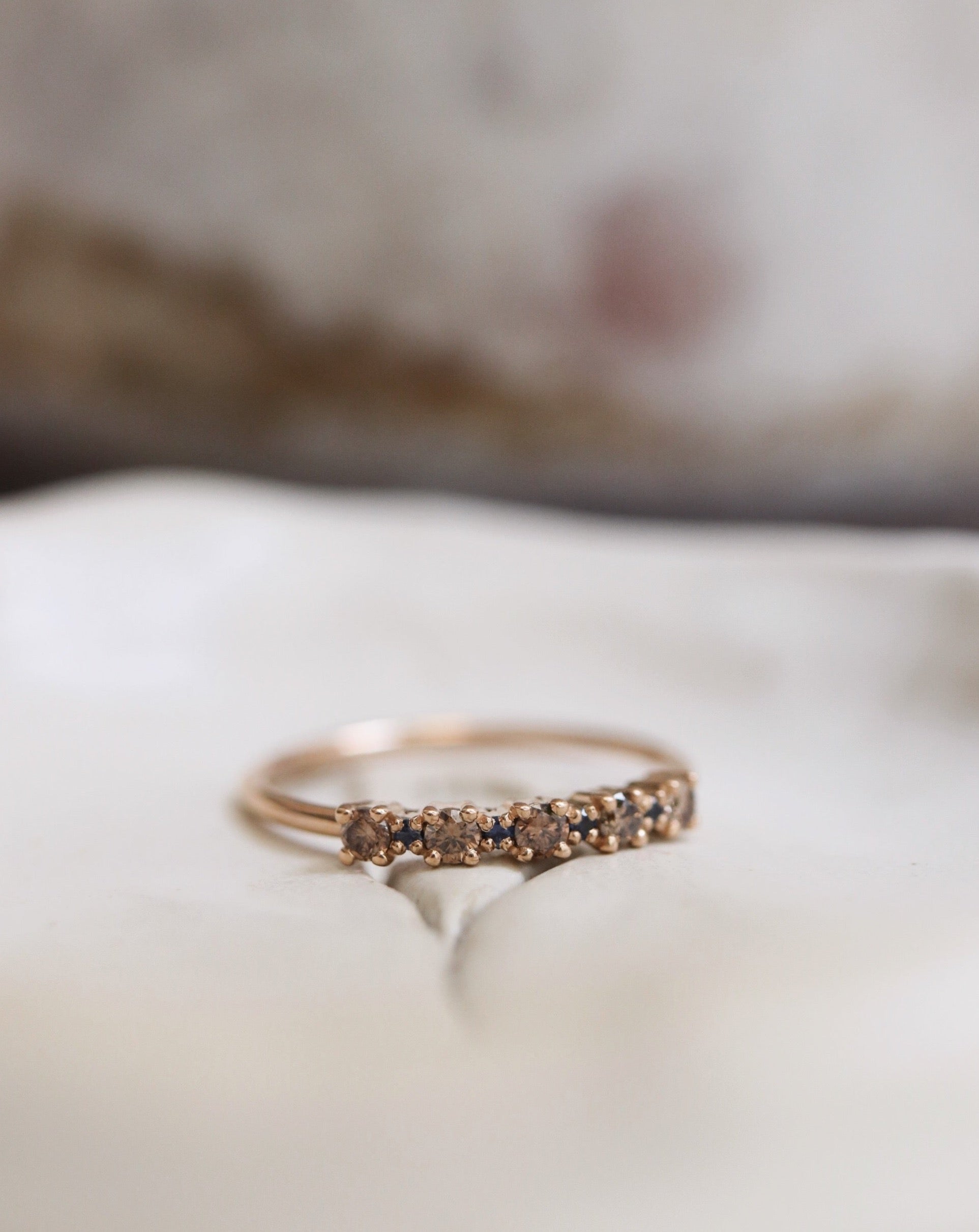 Finished: Mini Brigitte Ring with Chocolate Diamonds and Dark Blue Sapphires