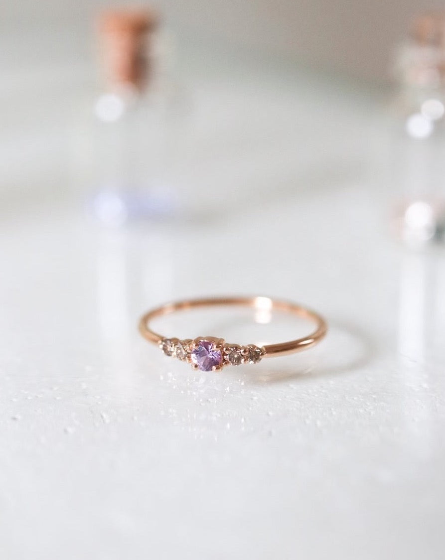 Finished: Mini Elise Ring with Lavender Sapphire and Chocolate Diamonds