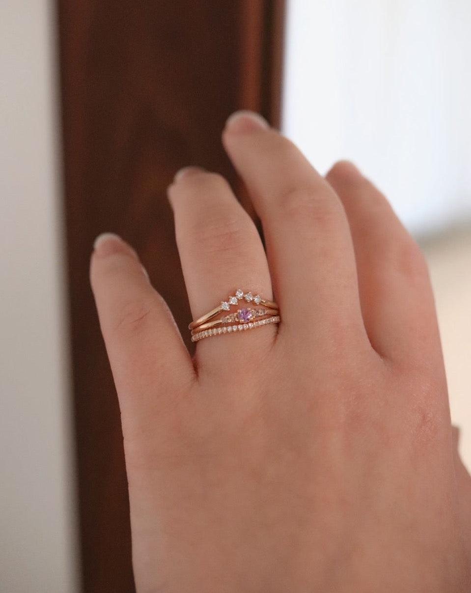 Wear this ring alone on the ring finger or middle finger or stack it with a curved band!