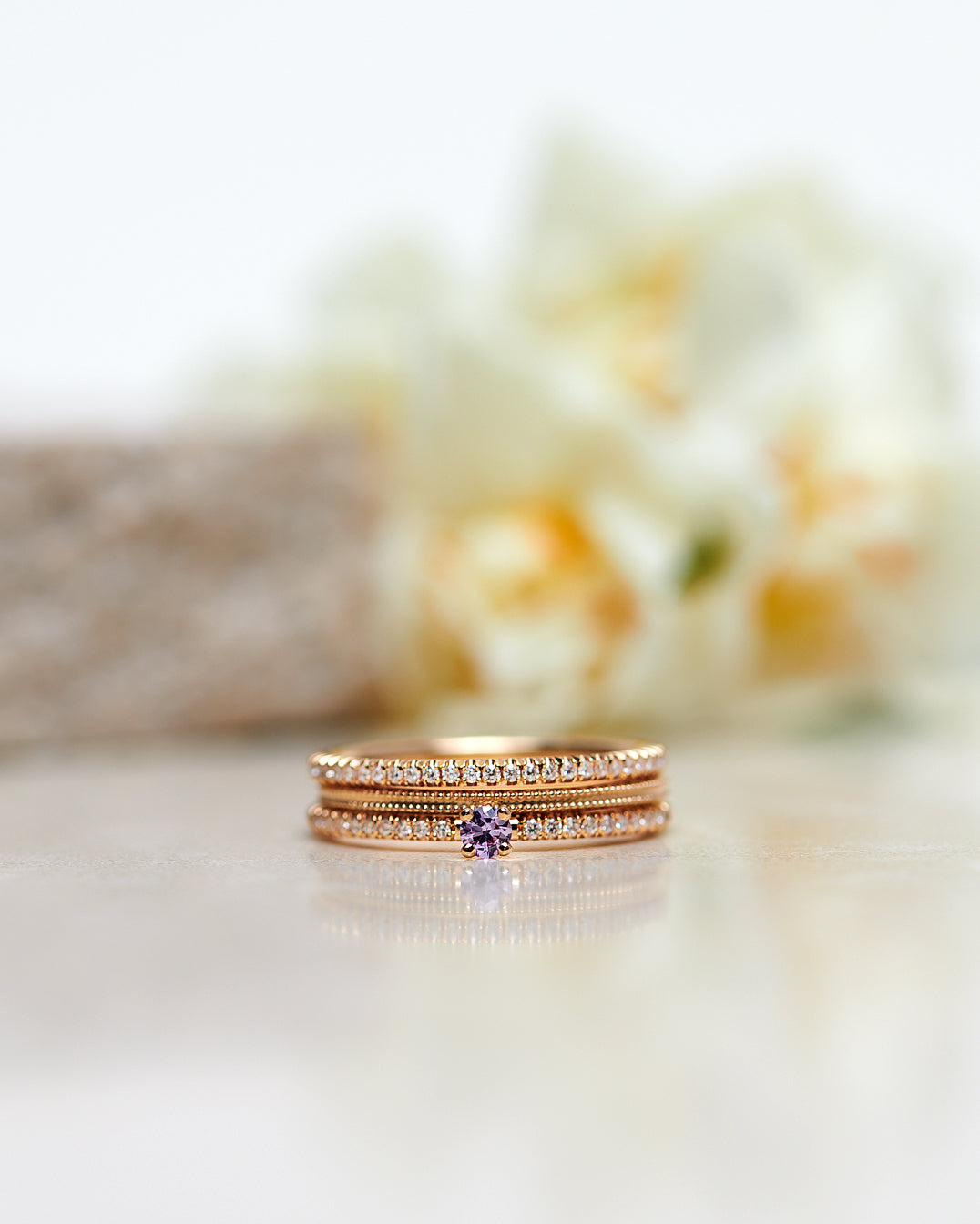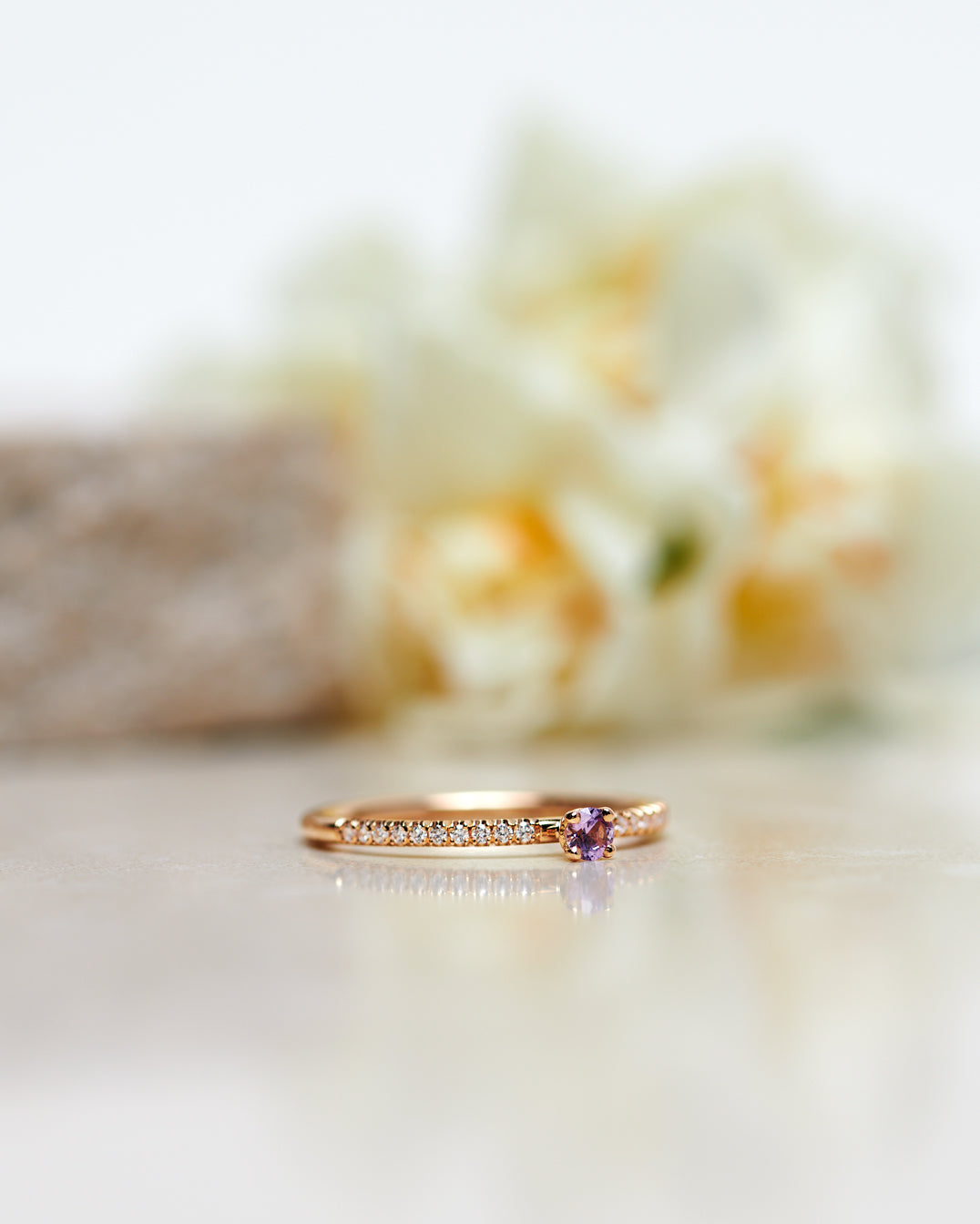 - Not So Tiny Sparkle Ring with a Lavender Sapphire and Diamond Sparkle - Low Setting