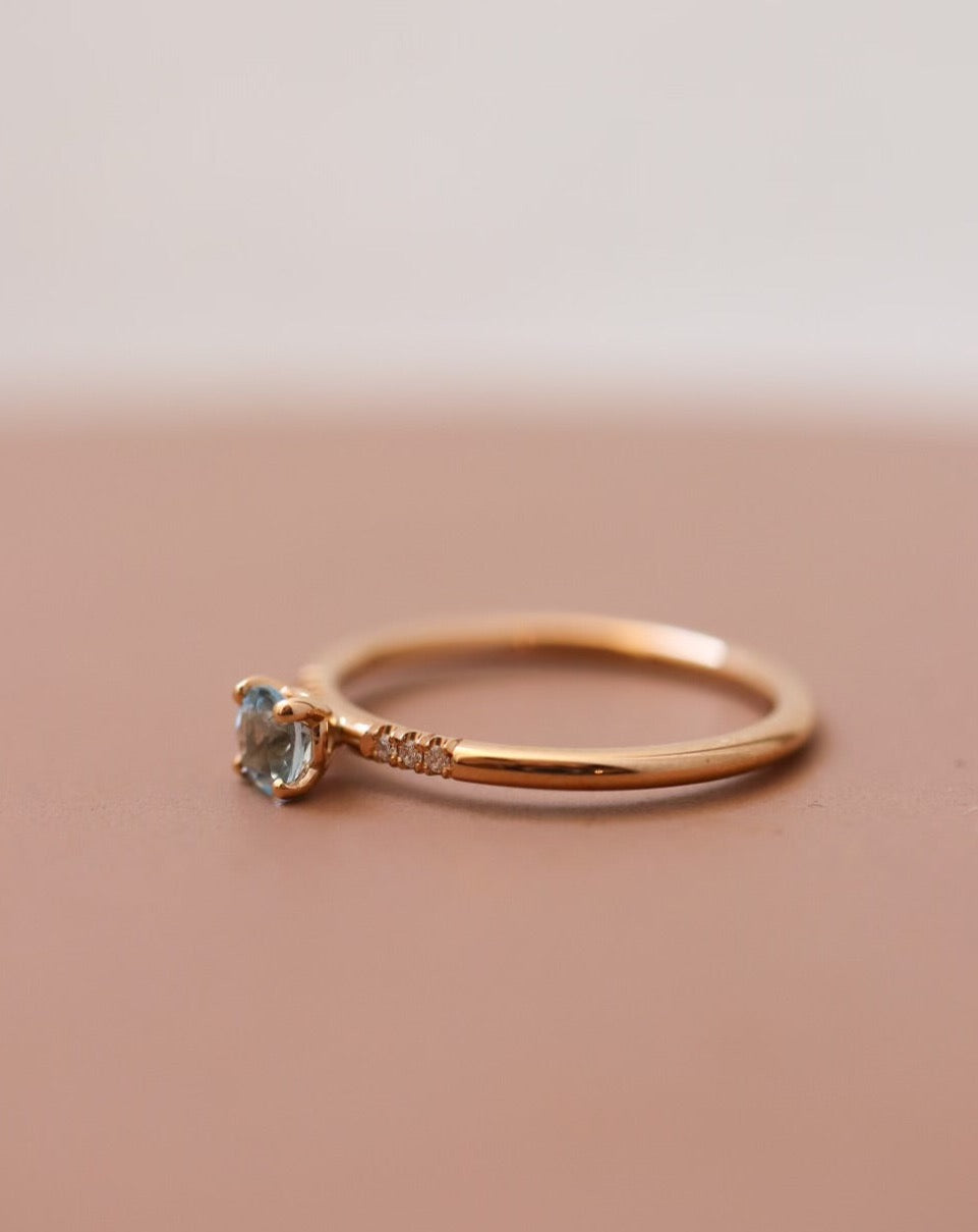 Finished: Not At All Tiny Little Sparkle Ring with Aquamarine and Diamonds - Low Setting