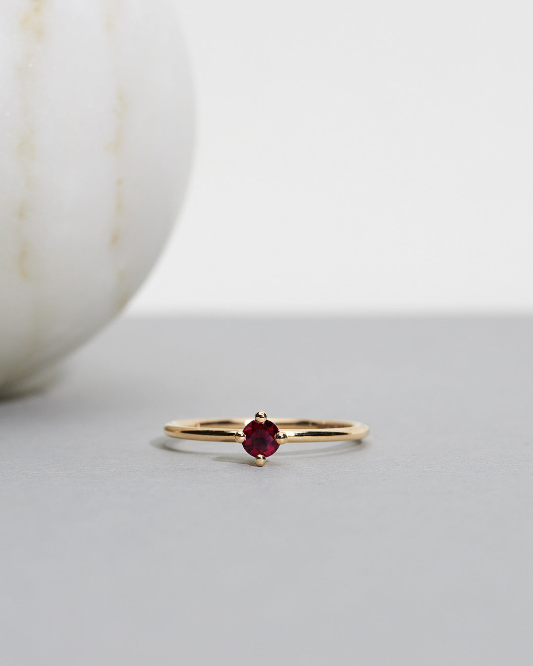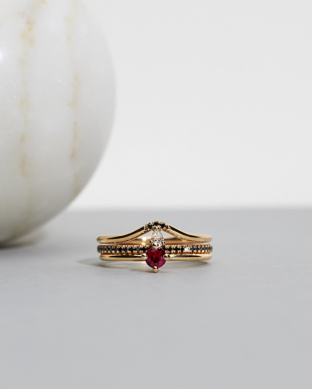 - Not At All Tiny Diamond Ring with a Red Ruby