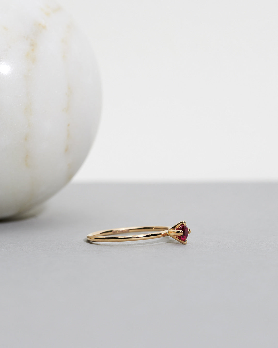 Rubies come in different shades of red, ranging from dull to vivid, light to dark. In this ring we've used a bright red ruby in a beautiful quality.