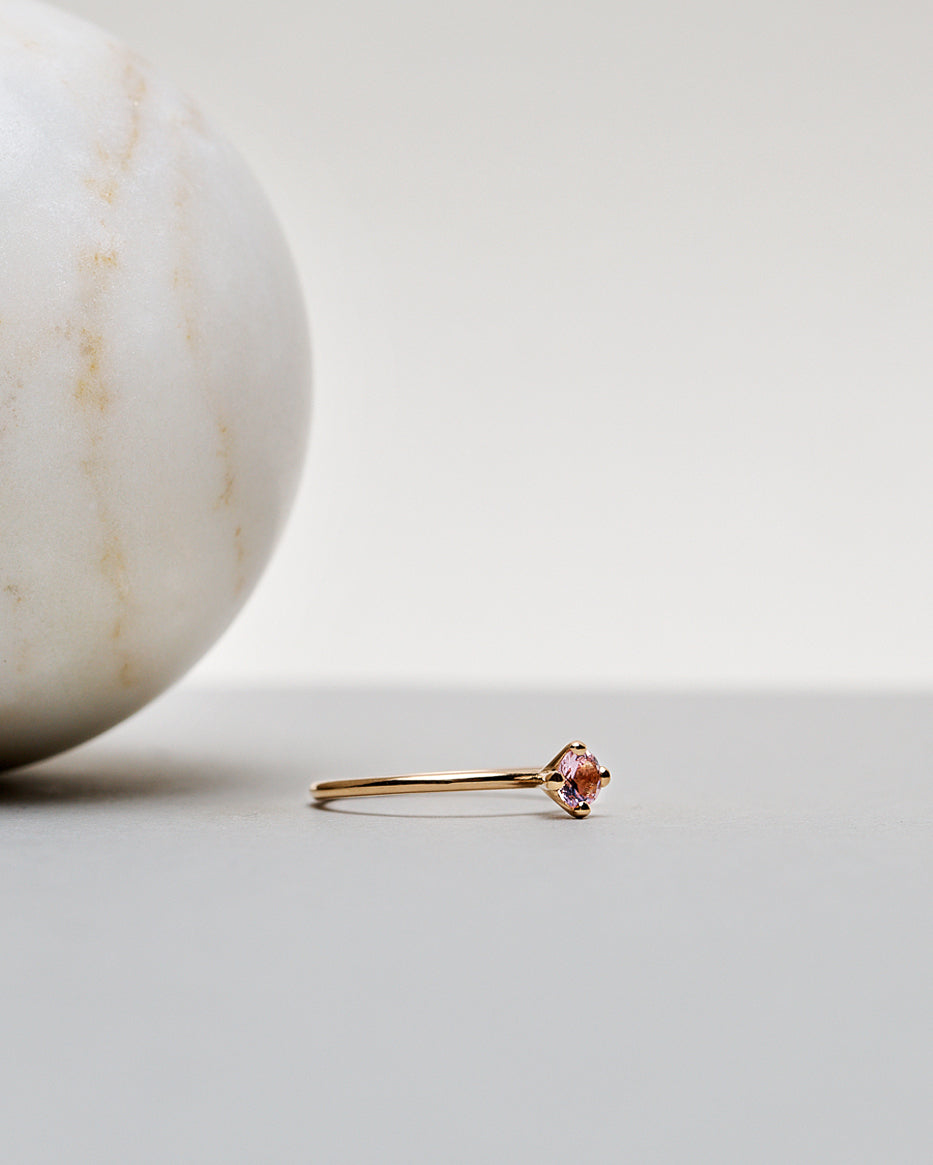 The morganite in this ring is sourced from the Shaki area of the Oyo region of southwestern Nigeria.
