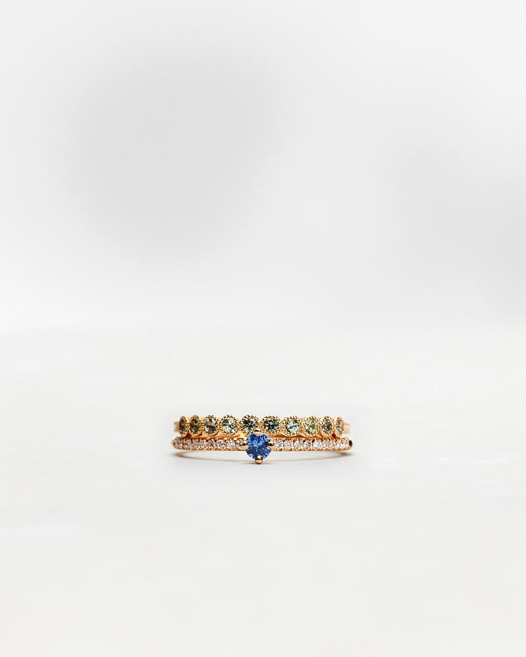 We love sapphires! They will sparkle forever and they come in all the colors of the rainbow. This week, we have used olive green, lavender and blue sapphires to create five stunning, colorful rings.