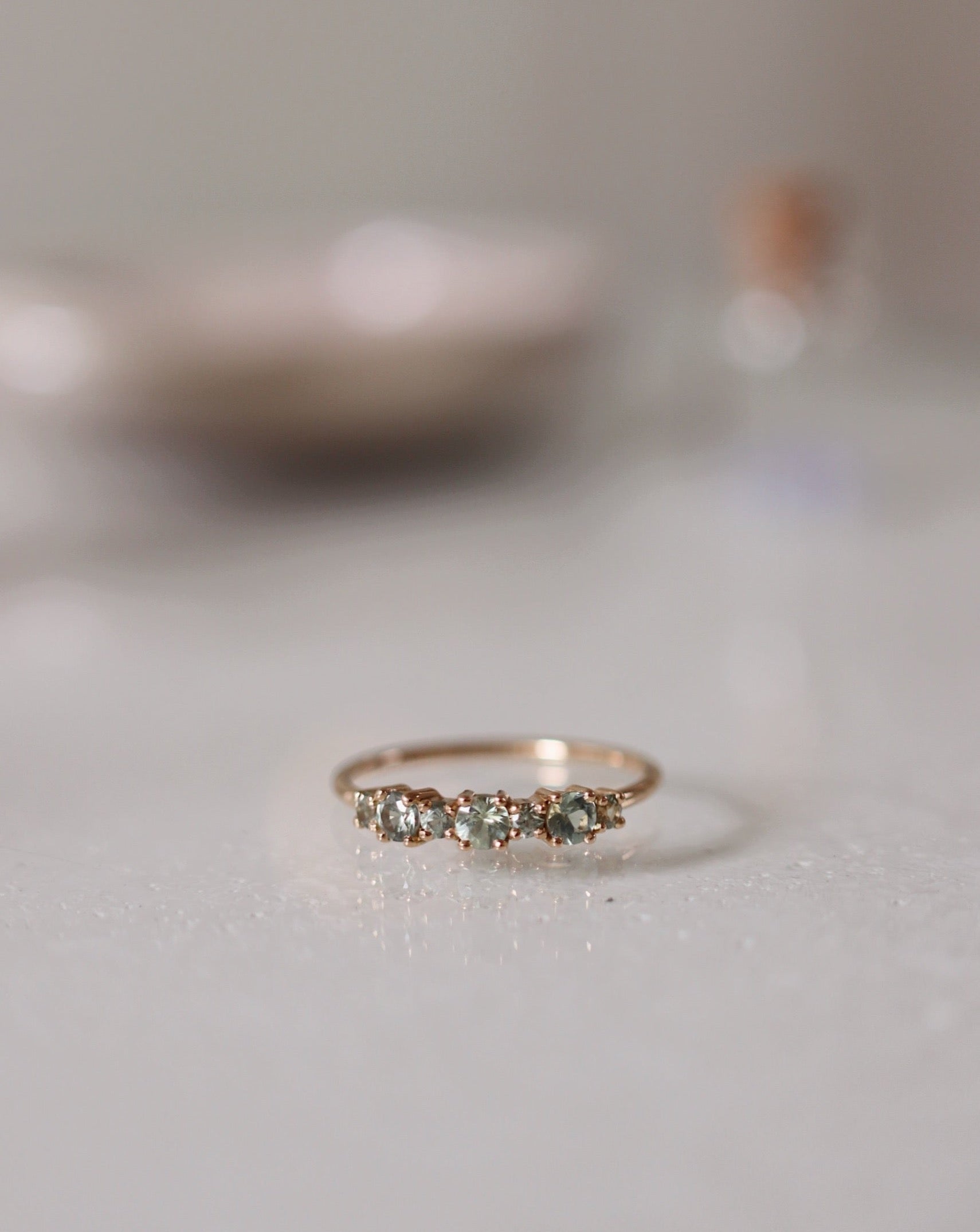Finished: Pre-loved Brigitte Ring with Olive Green Sapphires