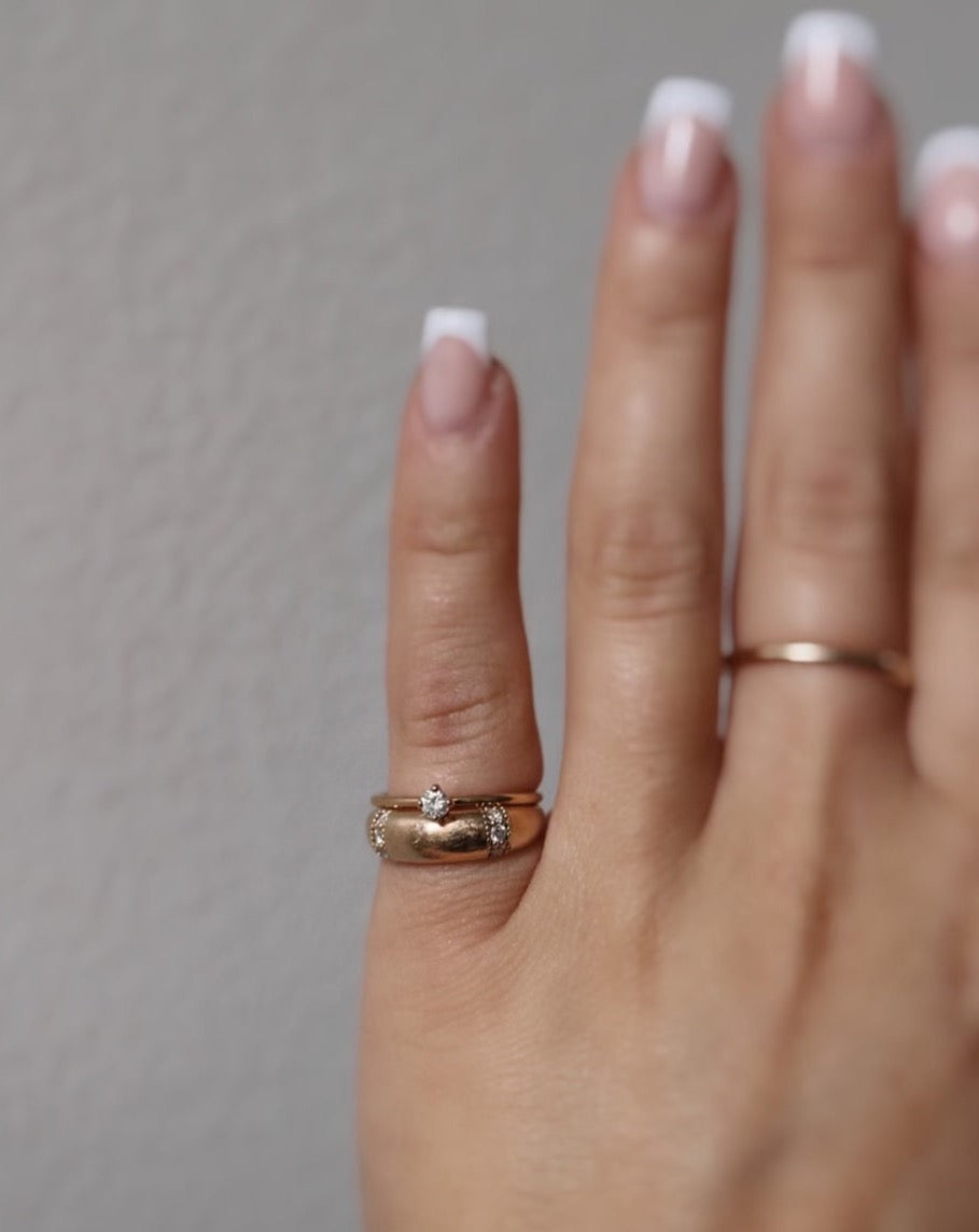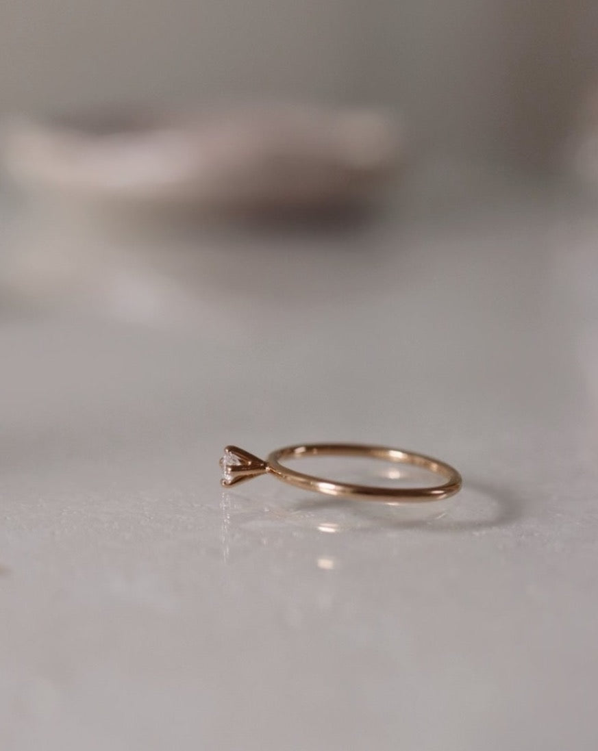 Not So Tiny Diamond Ring can be worn to any occasion. It's a petite ring with the diamond set high enough to be stacked with most rings from our collection. This ring will fit seamlessly into any existing jewelry collection, but it is also very popular as a starter ring, for those who have not yet begun their jewelry collection. This might be your chance to start yours!
