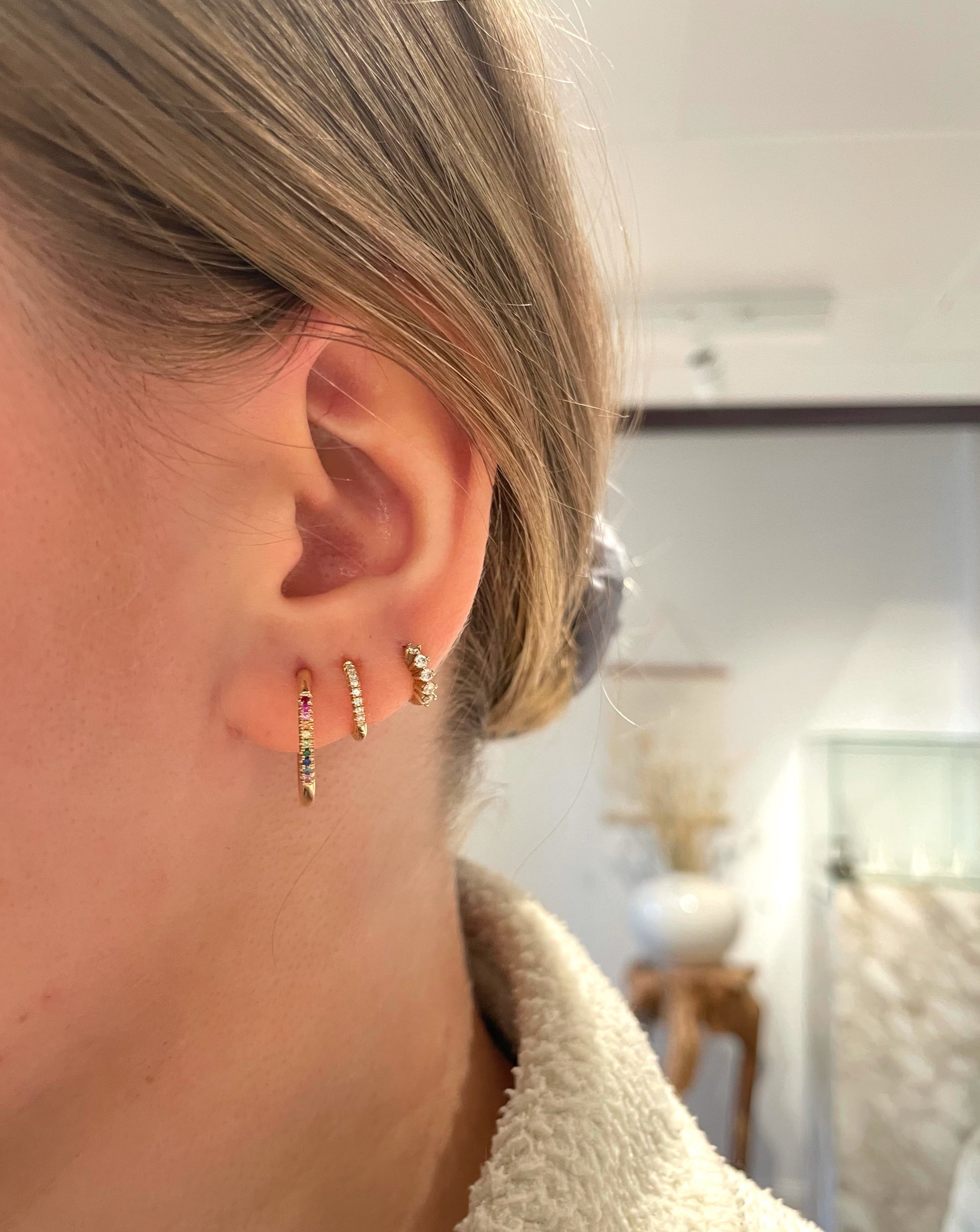Jade Enough Hoop is a stunning earpiece to be worn everyday. This version has a rainbow gradient that adds a touch of color to your look.