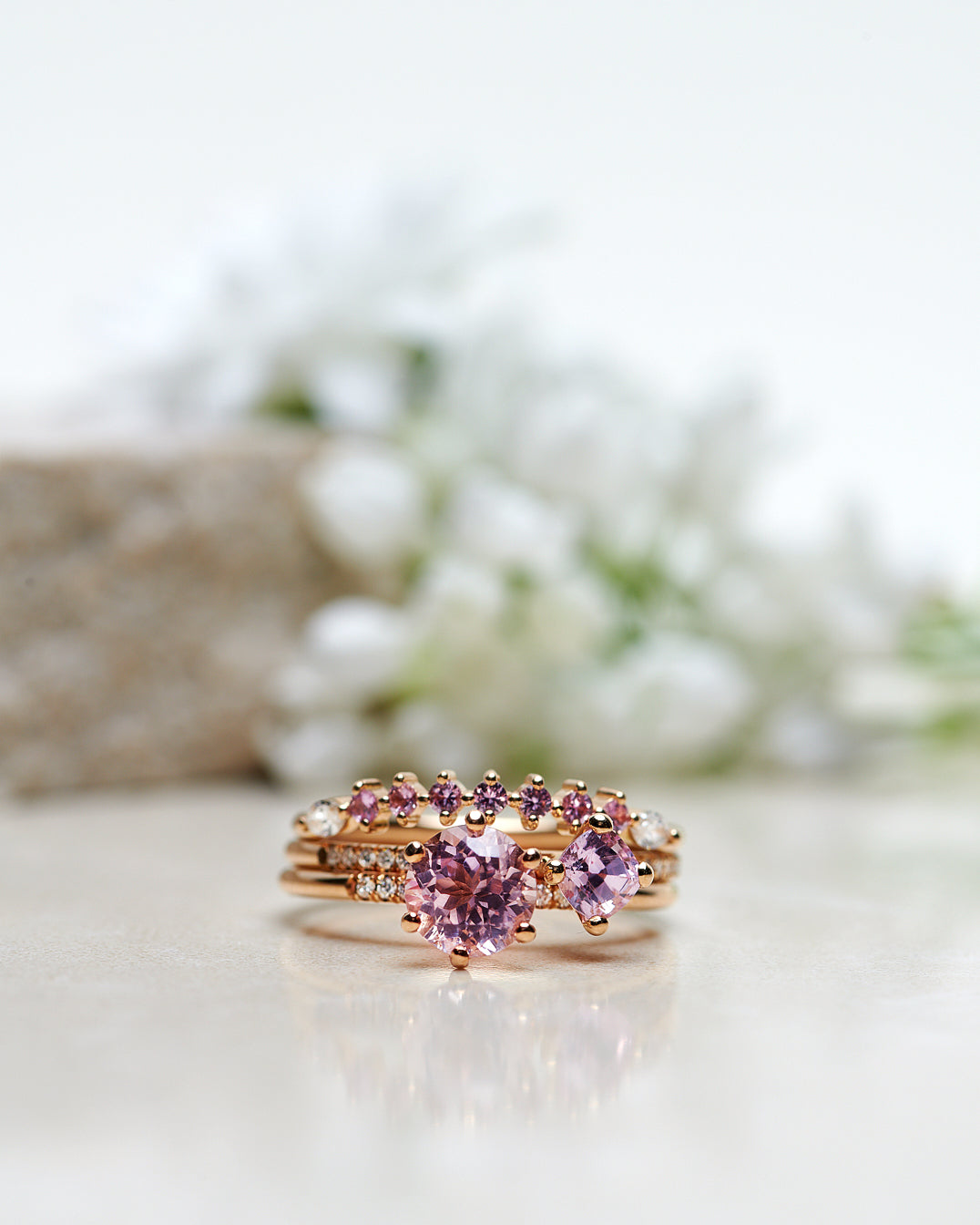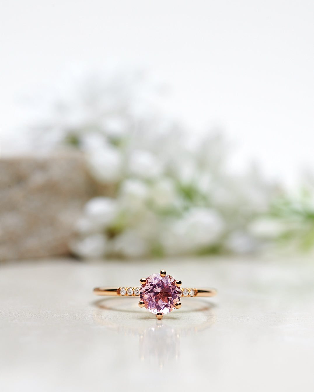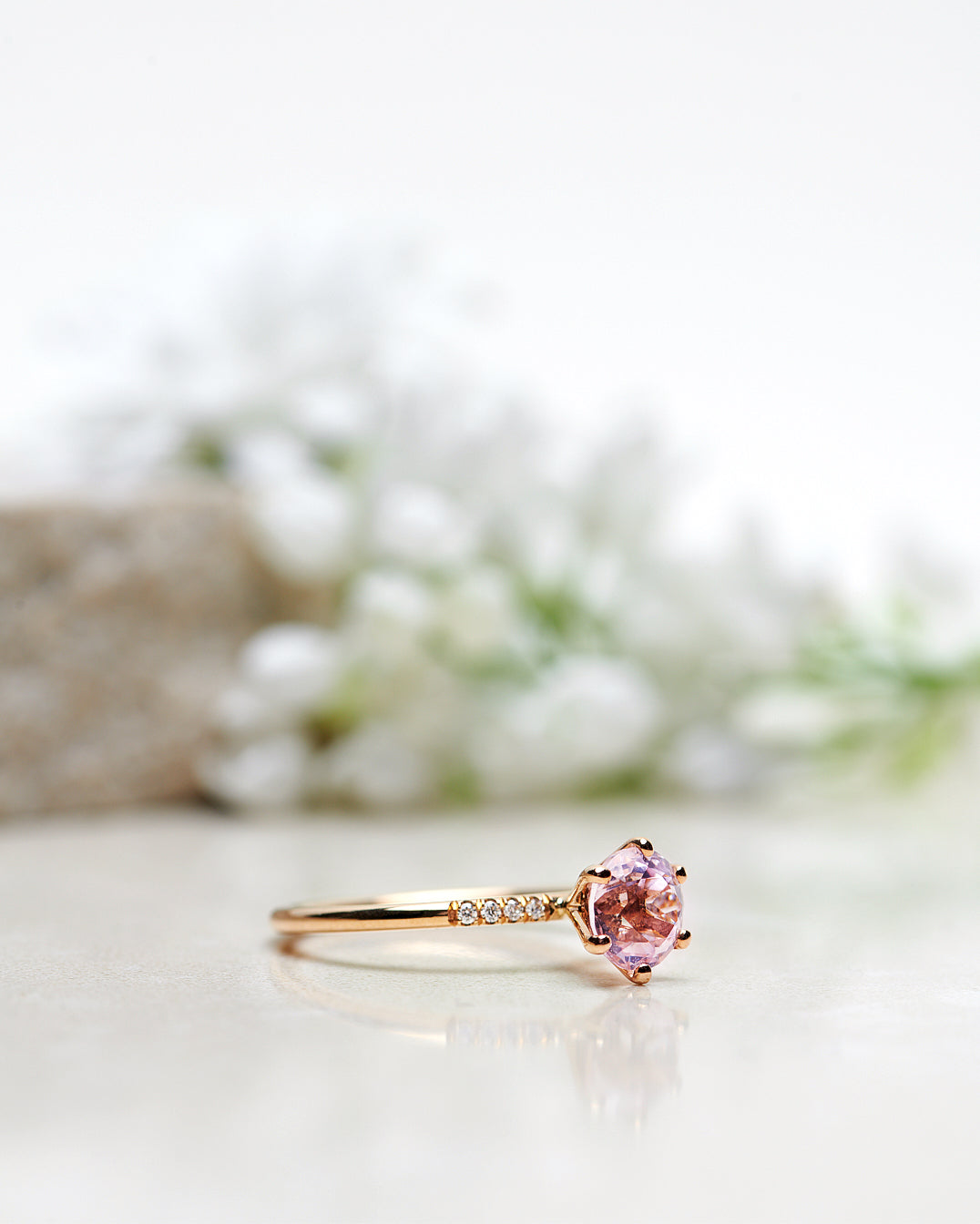 - Solitaire Petite Little Sparkle Ring with Light Pink Morganite and Diamonds