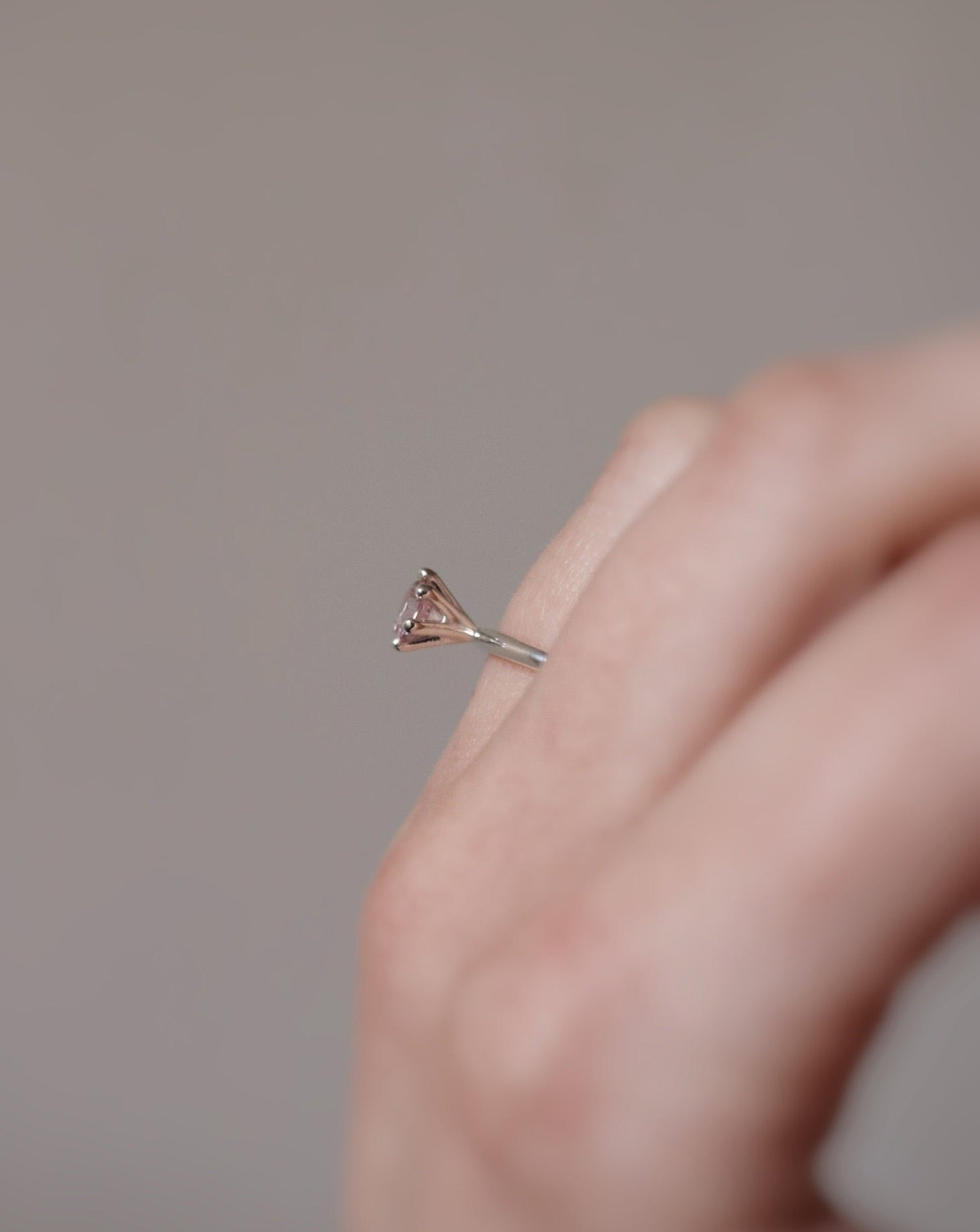 Finished: High-Set Solitaire Ring in Silver with A Light Pink Morganite