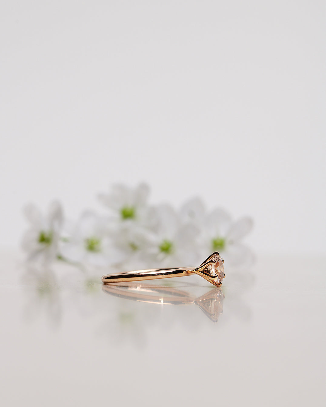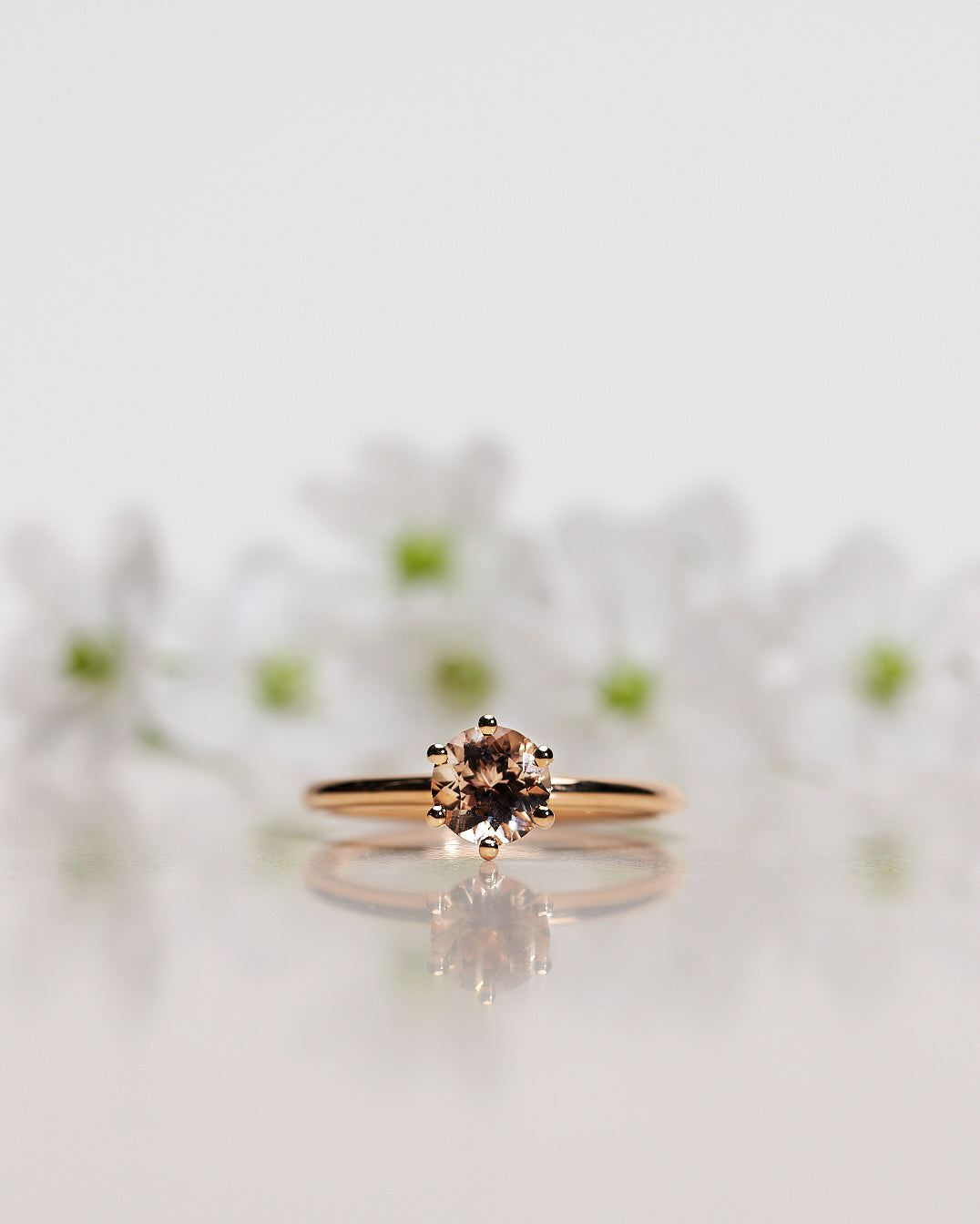 This ring has an amazing portuguese cut champagne morganite. The portuguese cut is also called "flower cut" since the small facets make the gemstone look like a beautiful flower 🌸