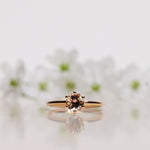 This is our Signature Solitaire Ring with the gemstone set high. A high setting gives the illusion that the gemstone is slightly larger compared to when set in a lower setting, closer to the ringband.