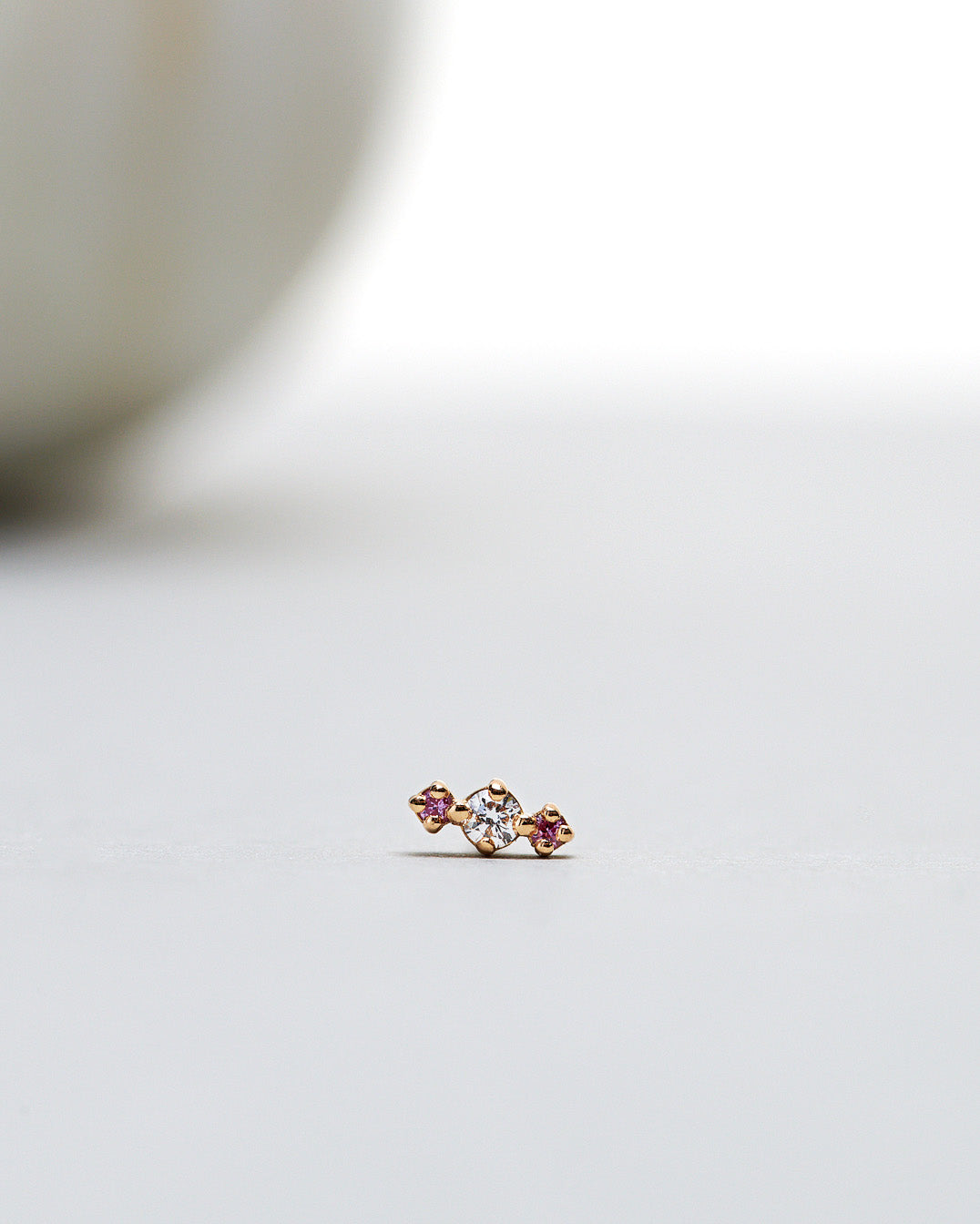 Finished: Tiny Brigitte Diamond Stud Earring with Light Pink Sapphires and Diamond TWVS