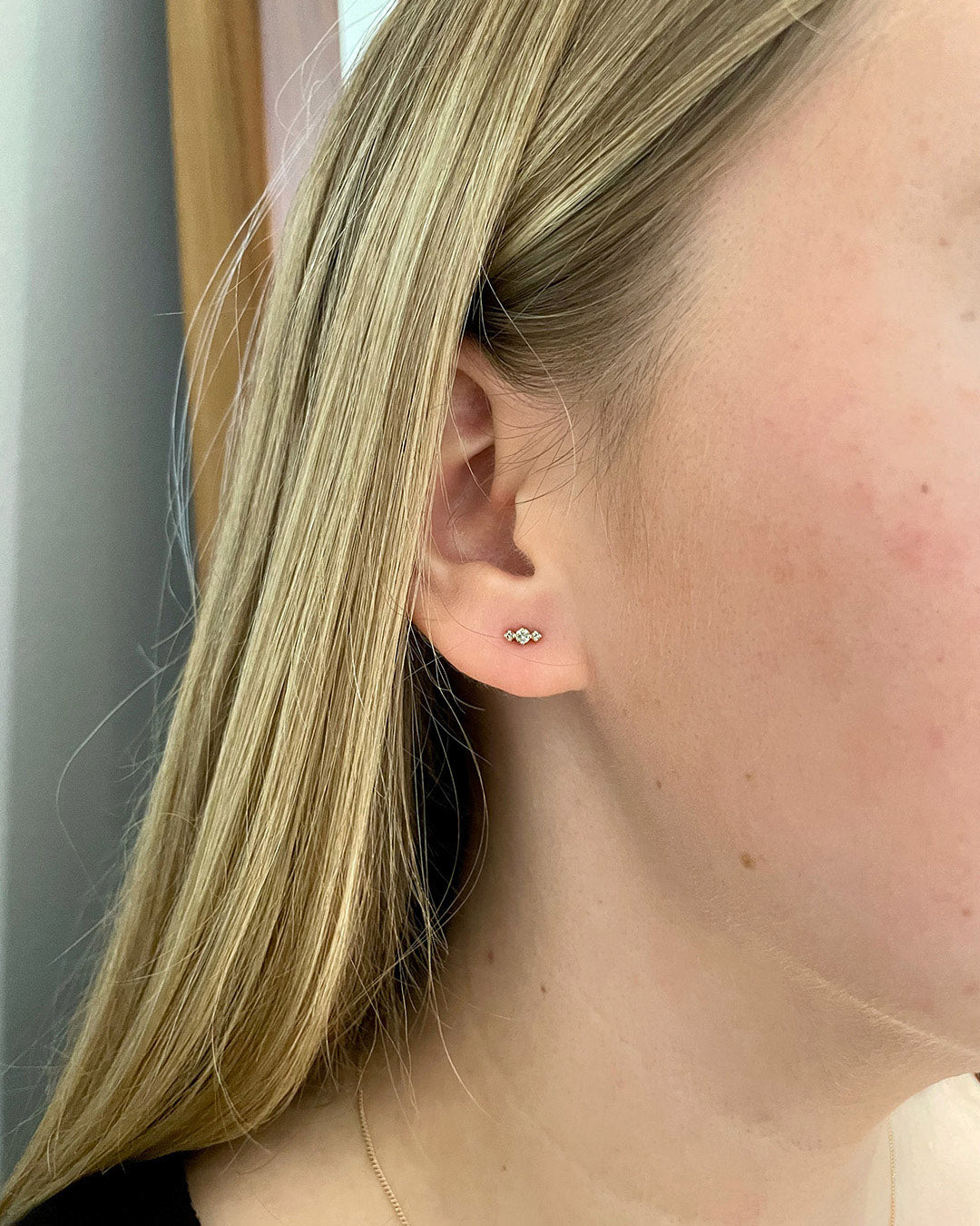 The lovely Tiny Brigitte Stud Earring comes with three gemstones in a simple yet exquisite design with a touch of vintage glamour.