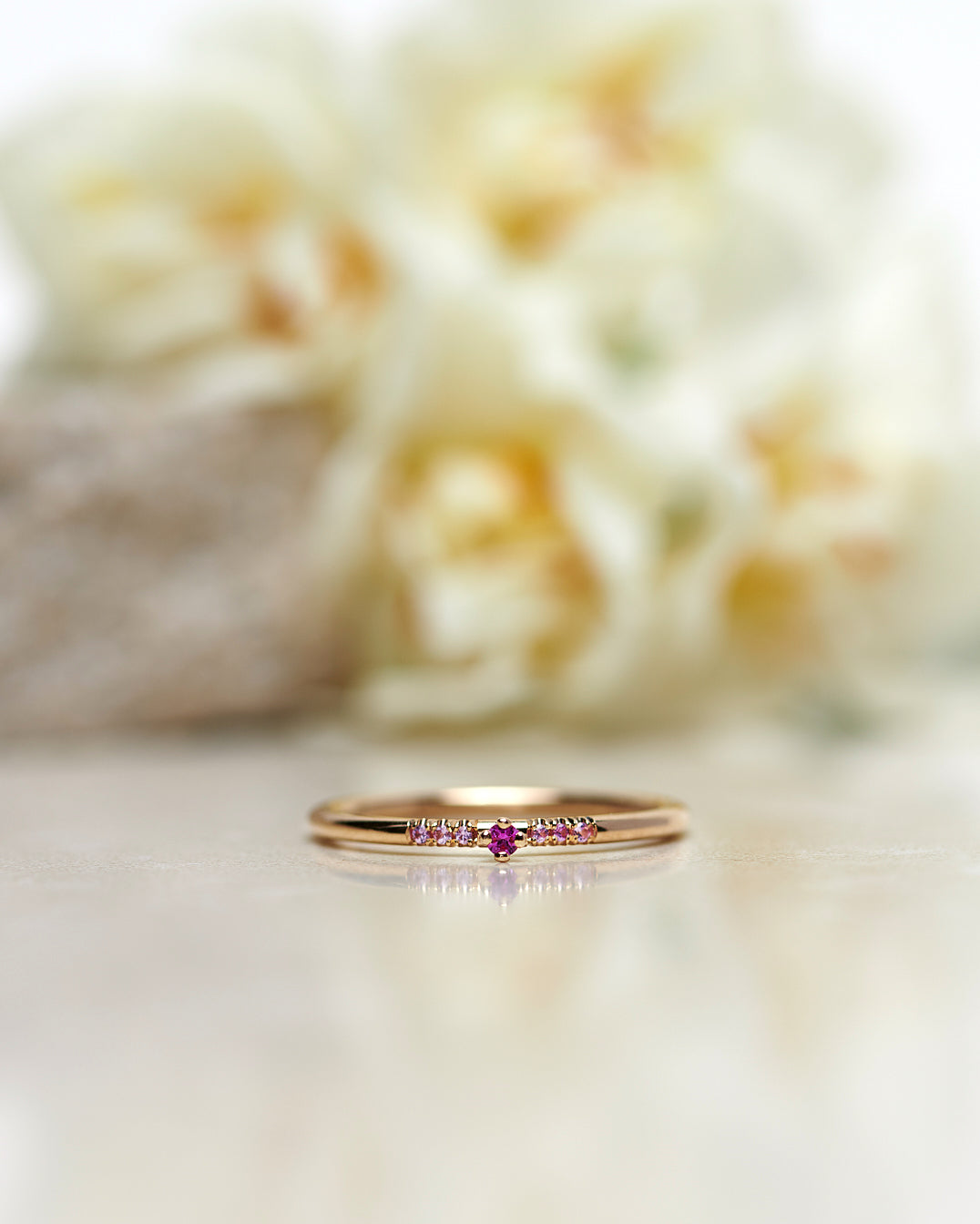 - Tiny Little Sparkle Ring with a Hot Pink Sapphire and Light Pink Sapphires