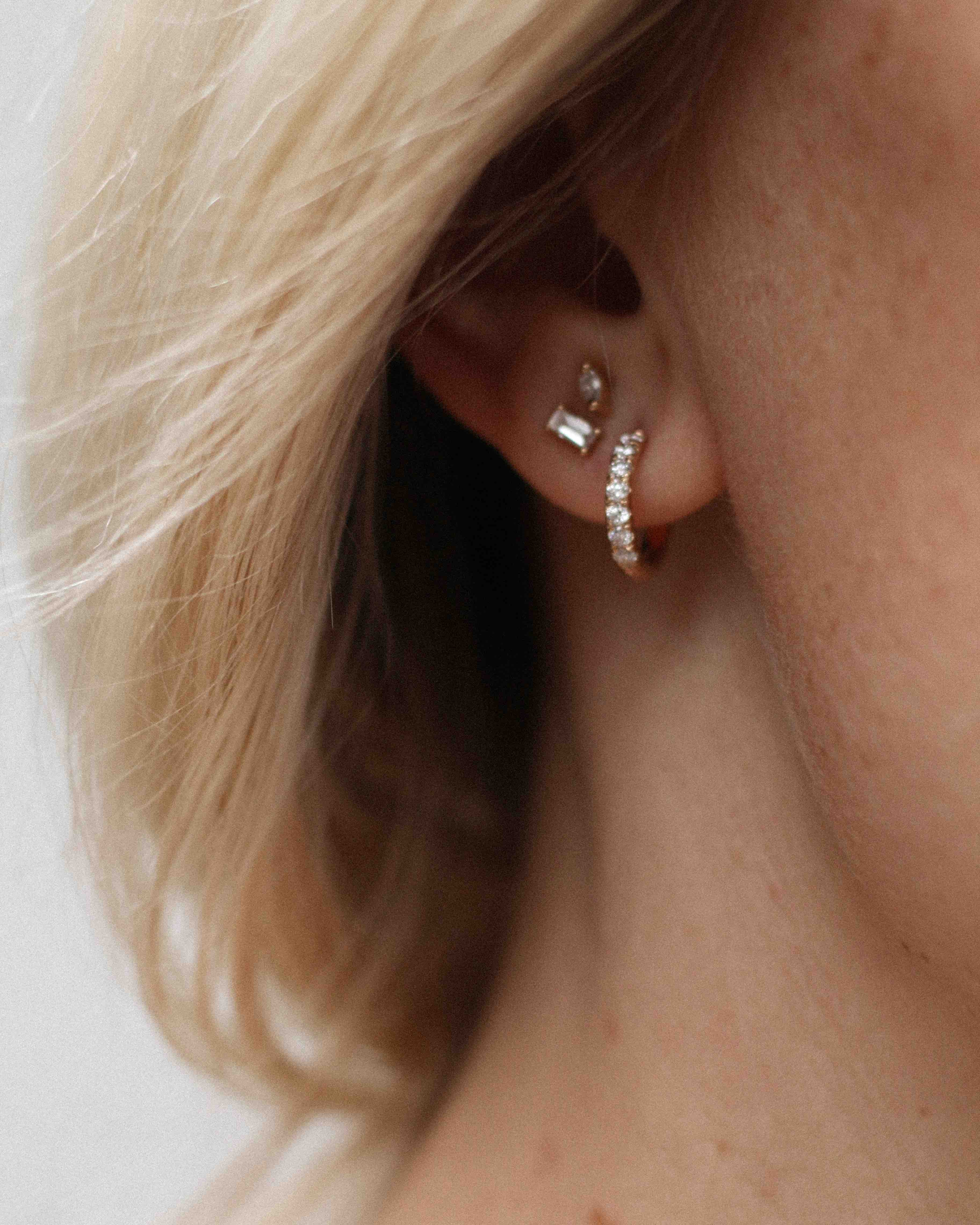 Jag har en förkärlek för minimalistiska diamantörhängen som kan bäras varje dag och inte behöver bytas ut. Därför lägger jag stor vikt vid två aspekter när jag designar: att de ska vara så bekväma att du kan sova i dem, och att du ska kunna bära samma örhängen dag ut och dag in. De ska därför ha säkra lås och vara hållbara!