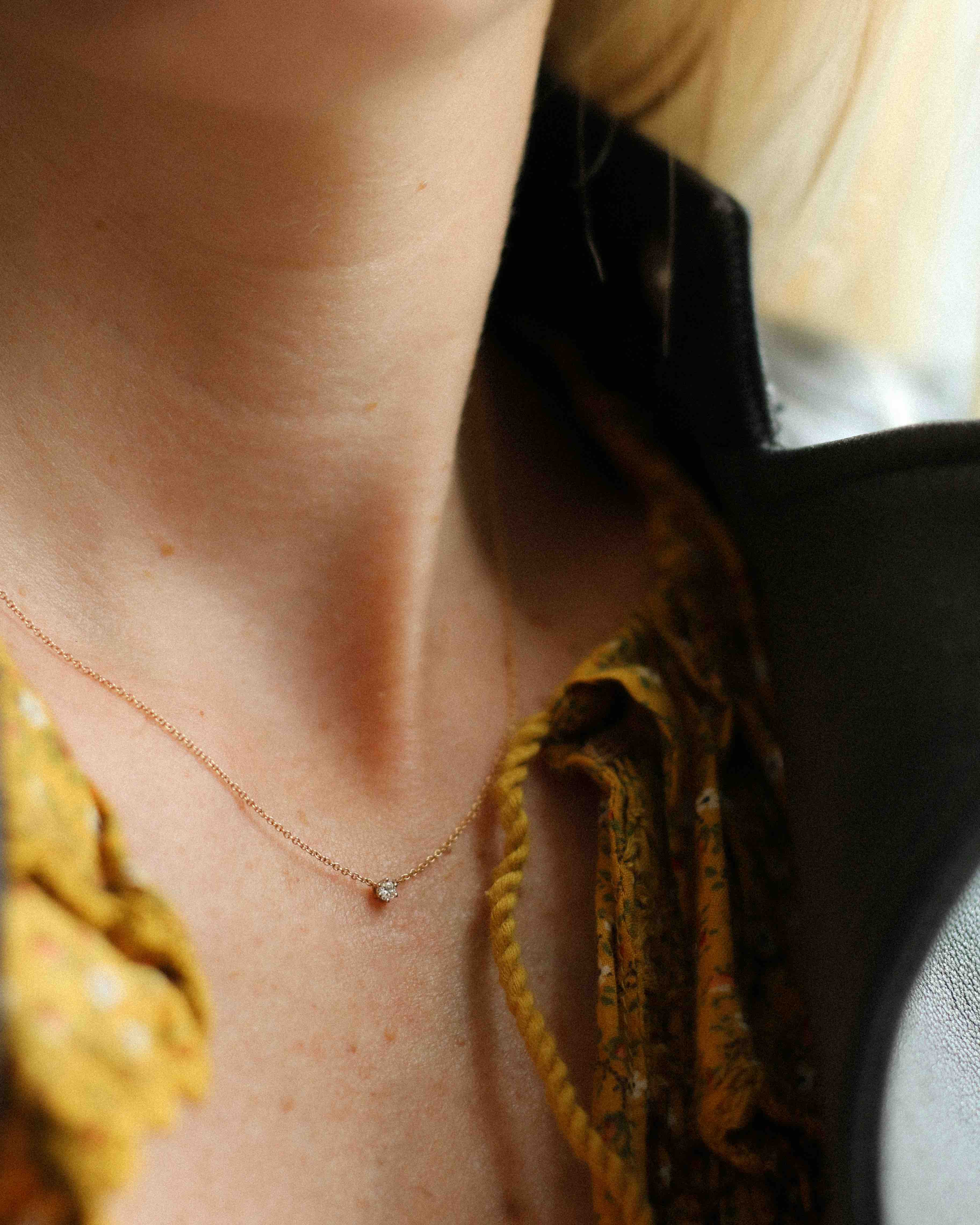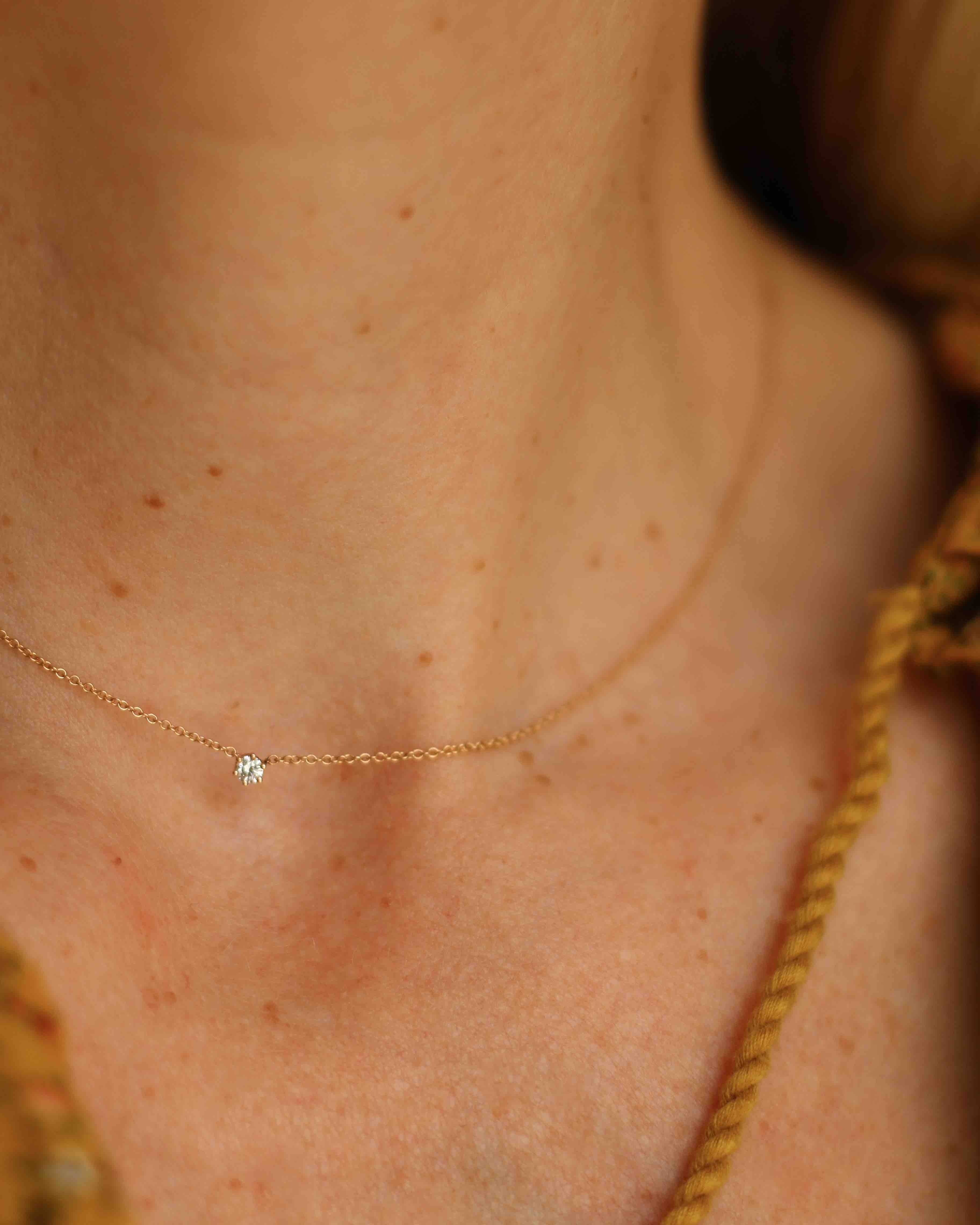 Detta är ett sådant halsband jag drömt om länge - något som glittrar under t-shirtkanten, eller glimrar till under den svala skjortan. Bär det ensamt för det enklaste skimmer, eller ihop med dina andra favorithalsband i en neckmess!