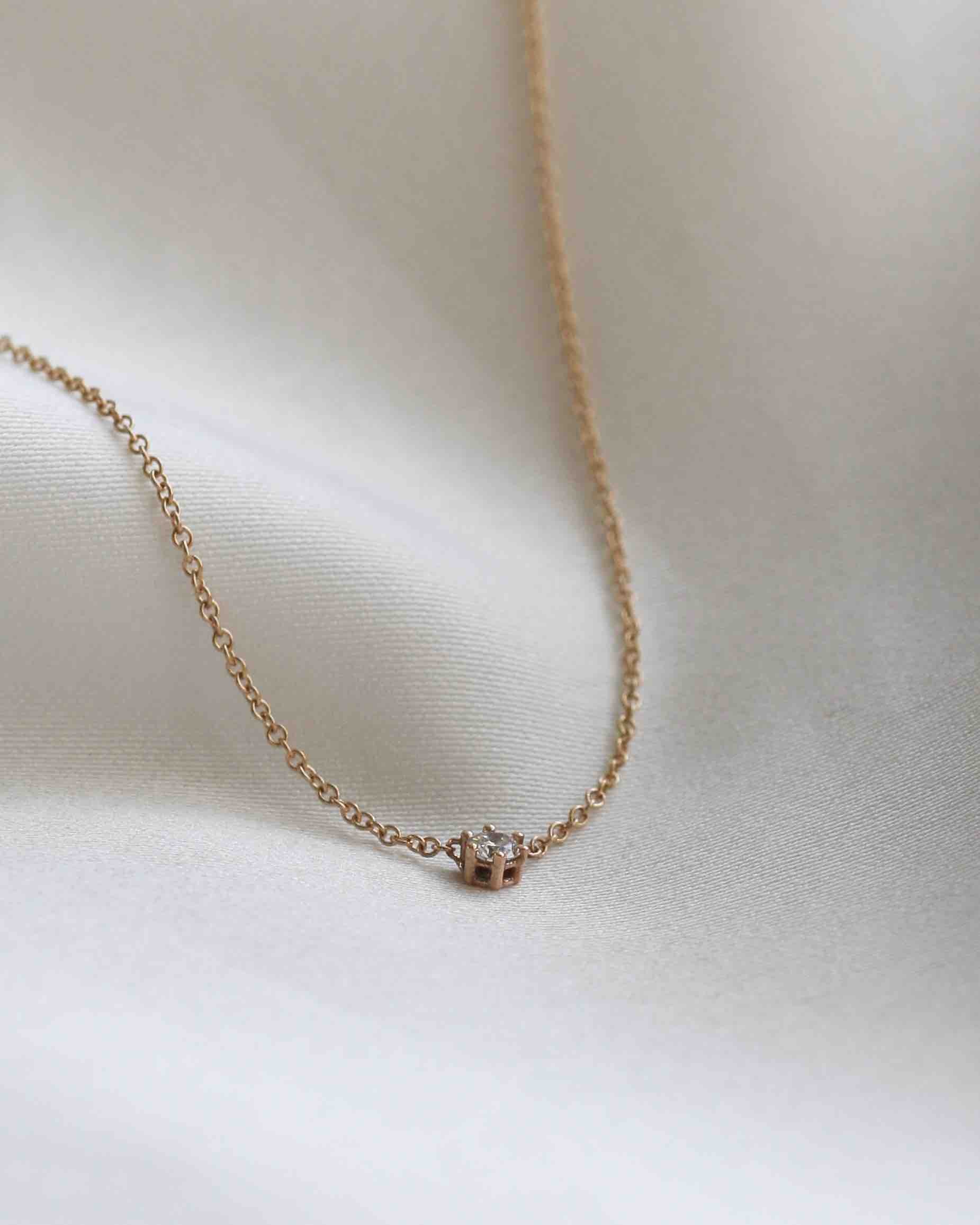 Första gången jag gjorde detta halsband använde jag en 0.03 CT diamant - men det blev lite för litet. Det försvann i halsgropen. Jag gjorde om det - nu med en 0.05 CT diamant - och det blev alldeles perfekt!