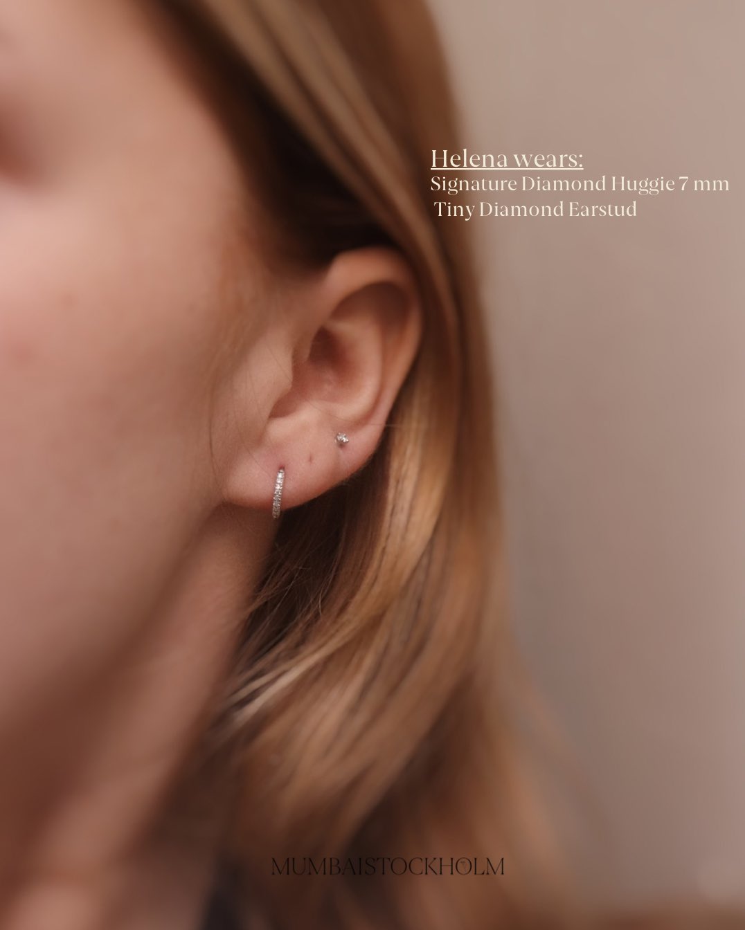 Jag har en förkärlek för minimalistiska diamantörhängen som kan bäras varje dag och inte behöver bytas ut. Därför lägger jag stor vikt vid två aspekter när jag designar: att de ska vara så bekväma att du kan sova i dem, och att du ska kunna bära samma örhängen dag ut och dag in. De ska därför ha säkra lås och vara hållbara!