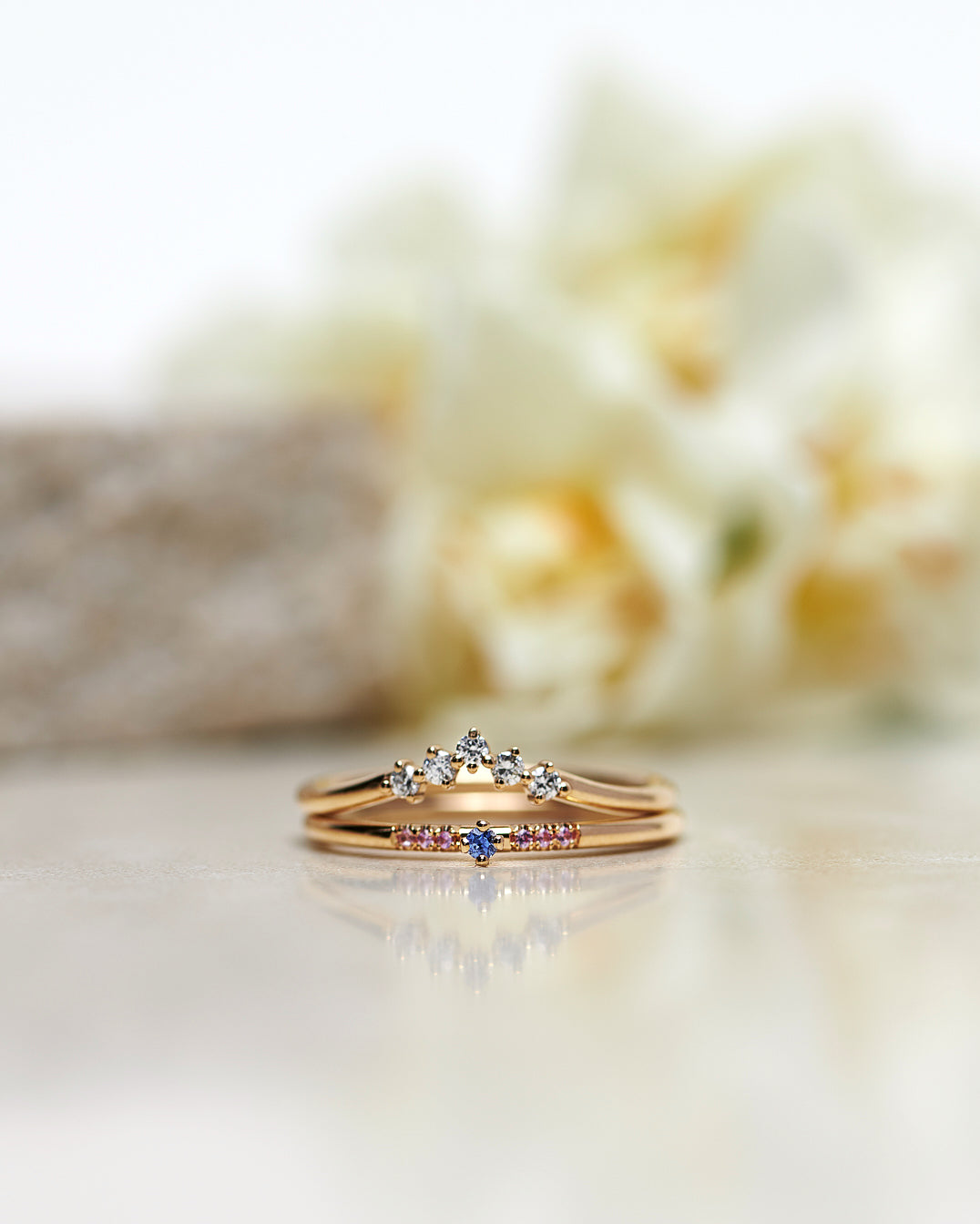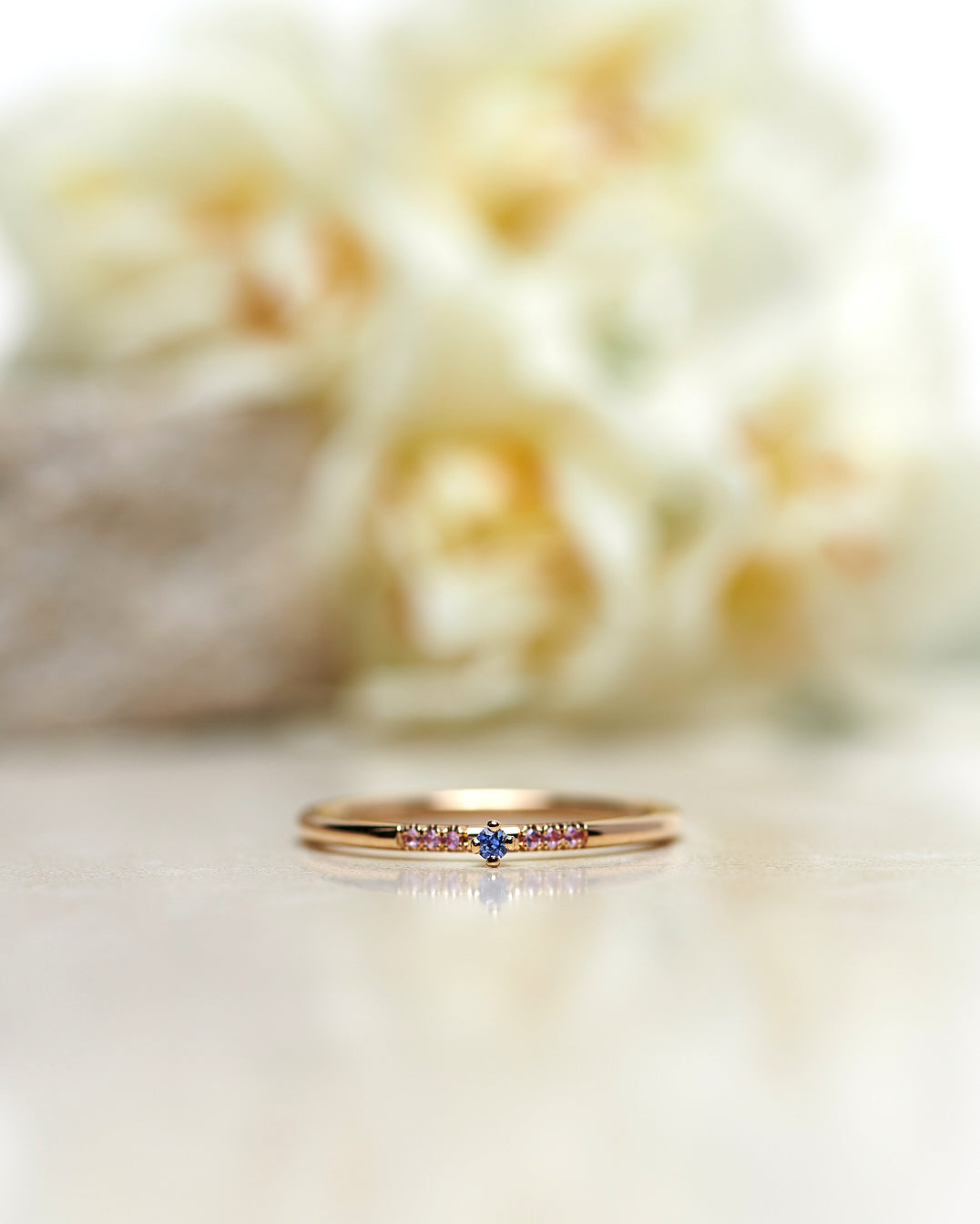 Finished: Tiny Little Sparkle Ring with a Light Blue Sapphire and Light Pink Sapphires
