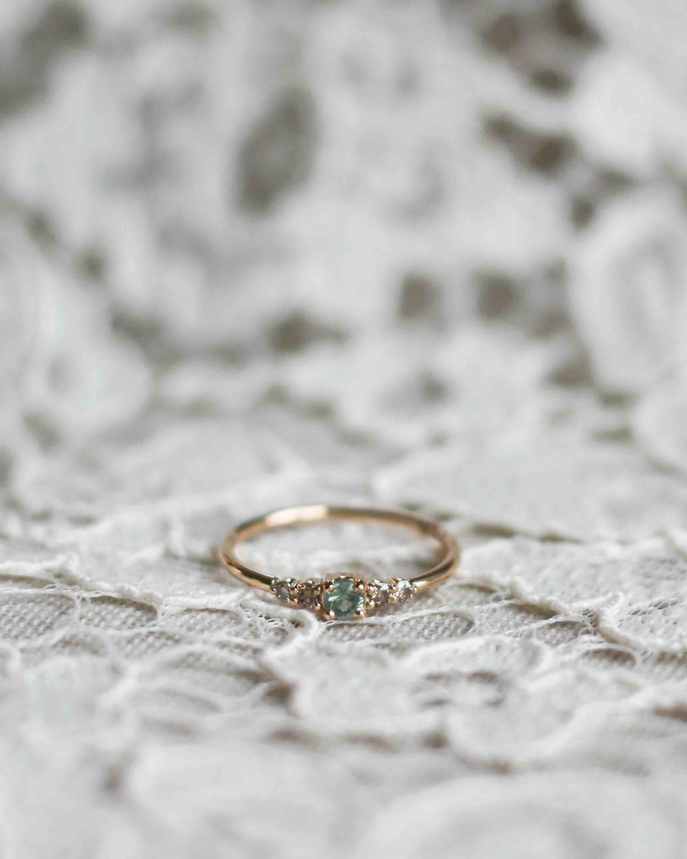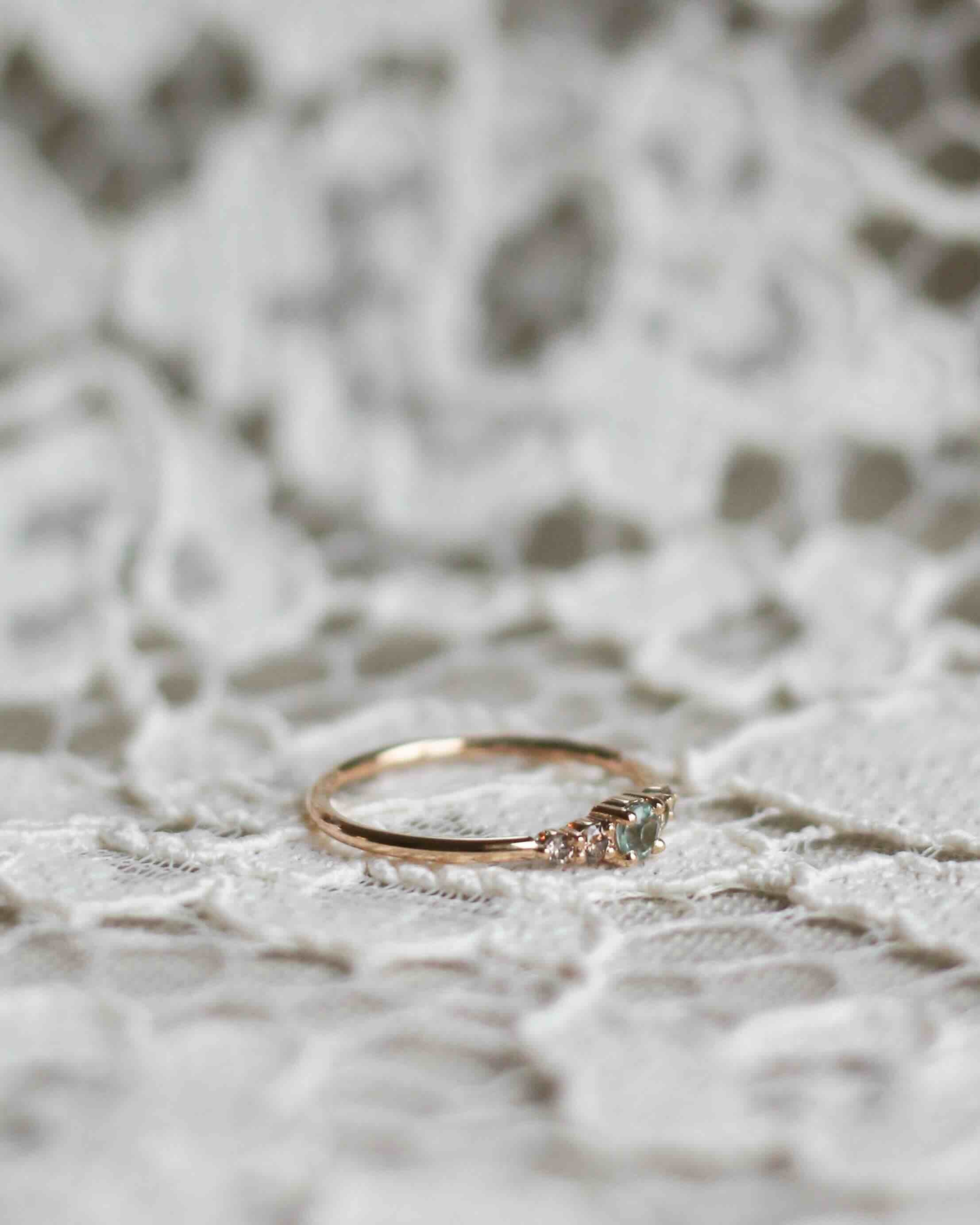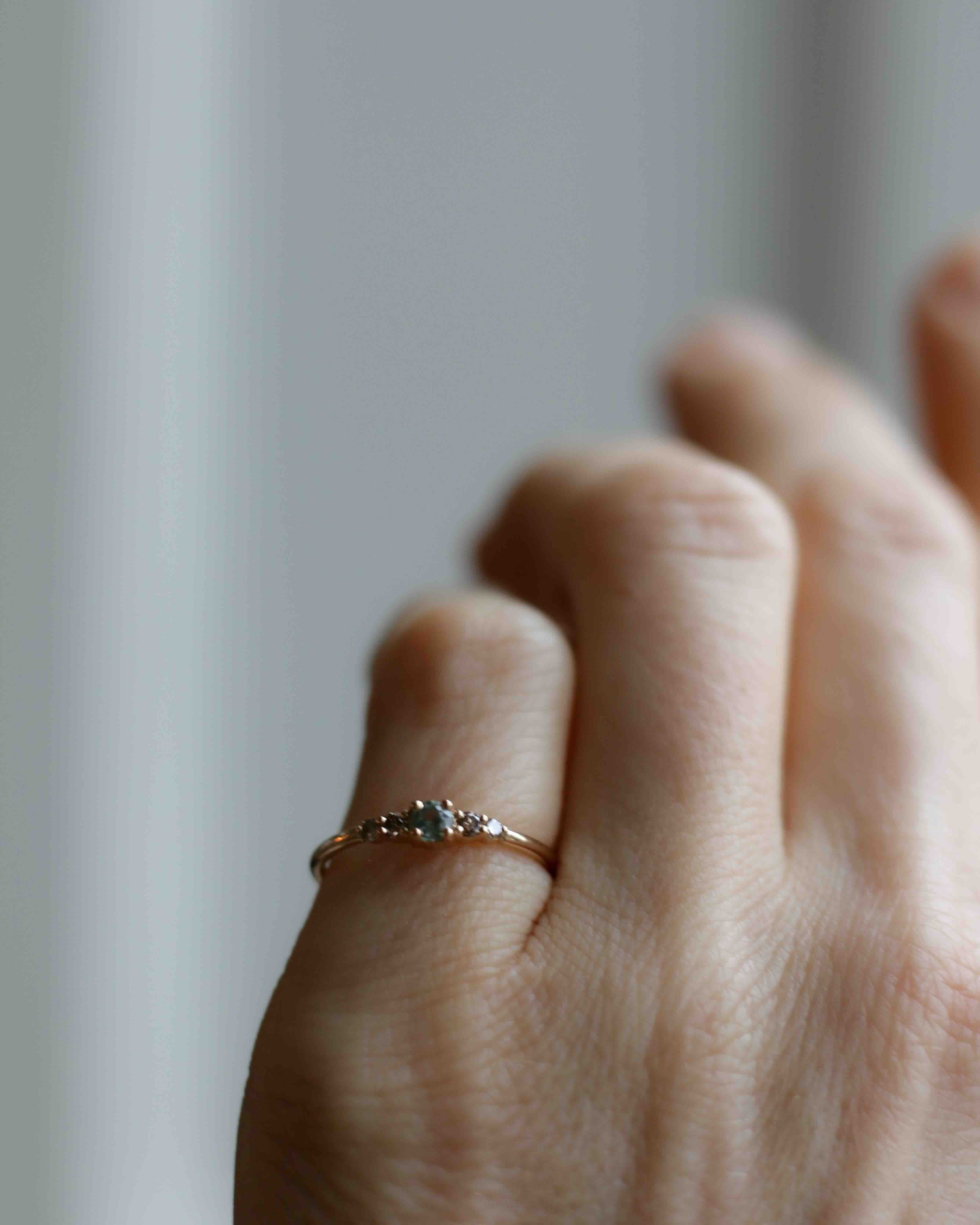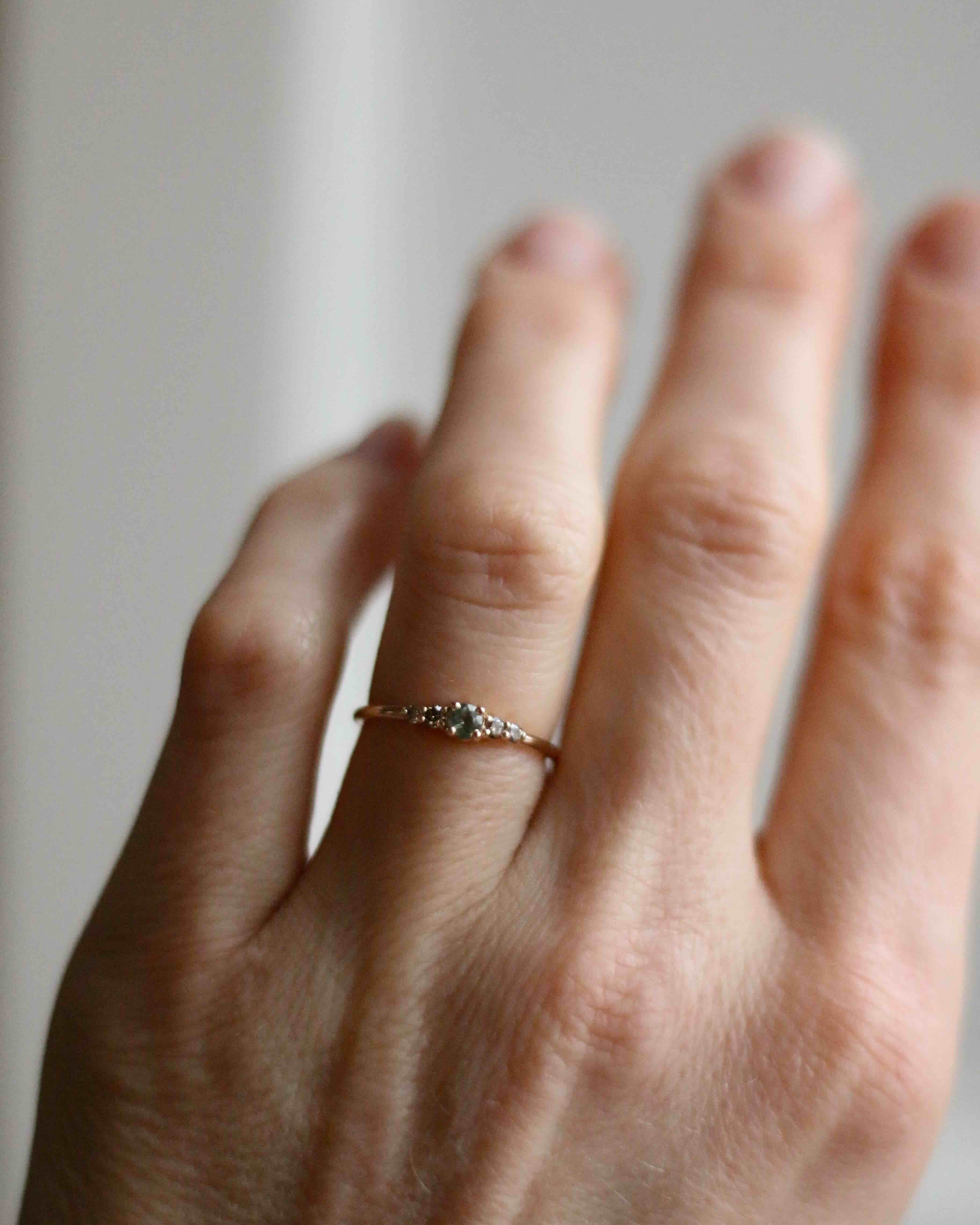 Många som provar Mini Elise Ring i vårt showroom upplever att den sitter väldigt fint på fingret och att balansen mellan de fem stenarna är så harmonisk.